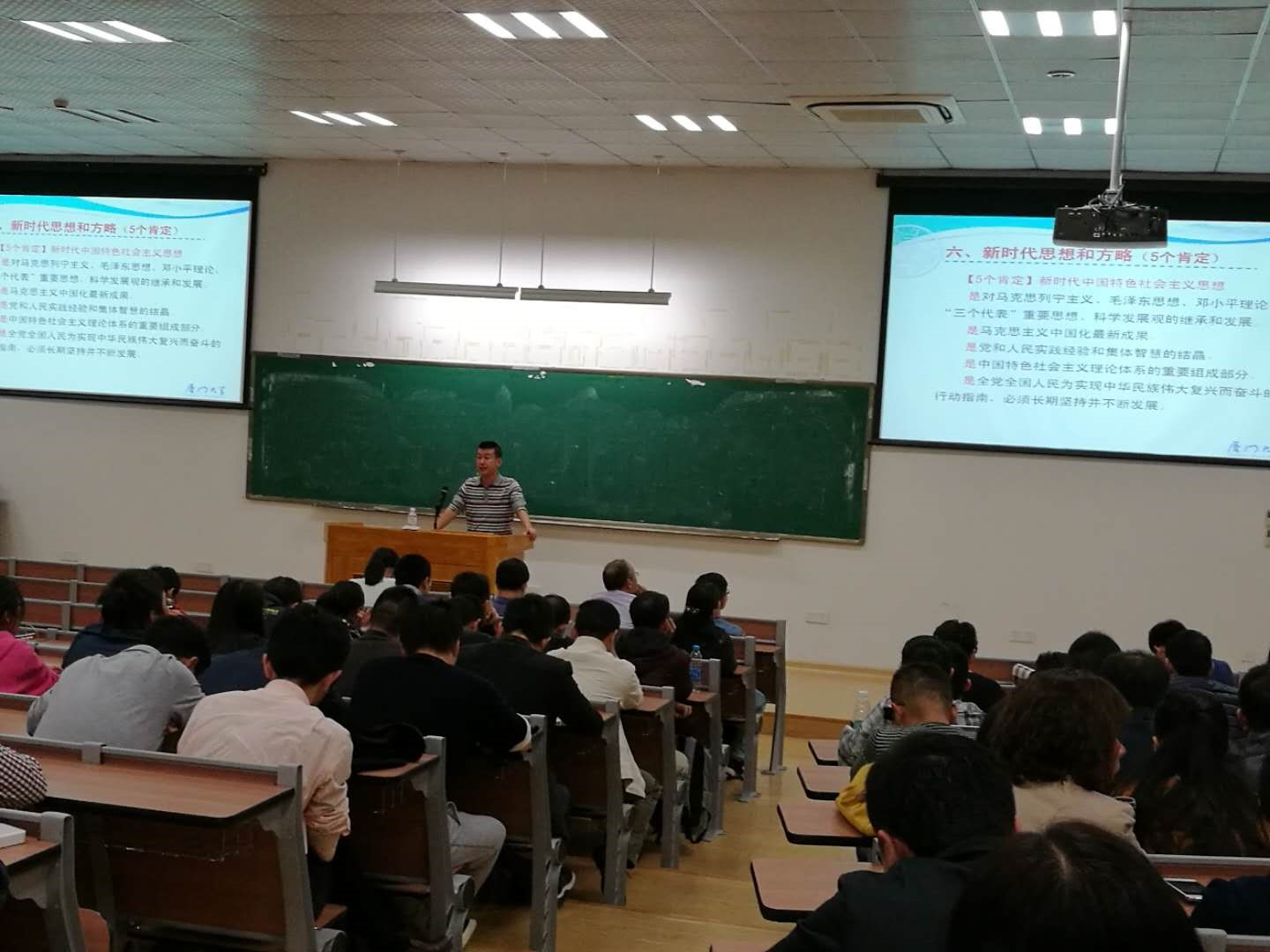 紧接着,林奋强老师谈到了对于新时代的理解。要把握时代的脉搏、了解社会发展大势,就需要清楚我们所处的时代背景。党的十九大报告中提出,我们处在一个全新的时代,这是一个承前启后、继往开来、在新的历史条件下继续夺取中国特色社会主义伟大胜利的时代,是决胜全面建成小康社会进而全面建成社会主义现代化强国的时代,是全国各族人民团结奋斗、不断创造美好生活、逐步实现全体人民共同富裕的时代,是全体中华儿女勠力同心、奋斗实现中华民族伟大复兴的中国梦的时代,是我国日益走近世界舞台中央、不断为人类做出更大贡献的时代。这个新时代,给我们提供了许多机遇,也带来了不少挑战。