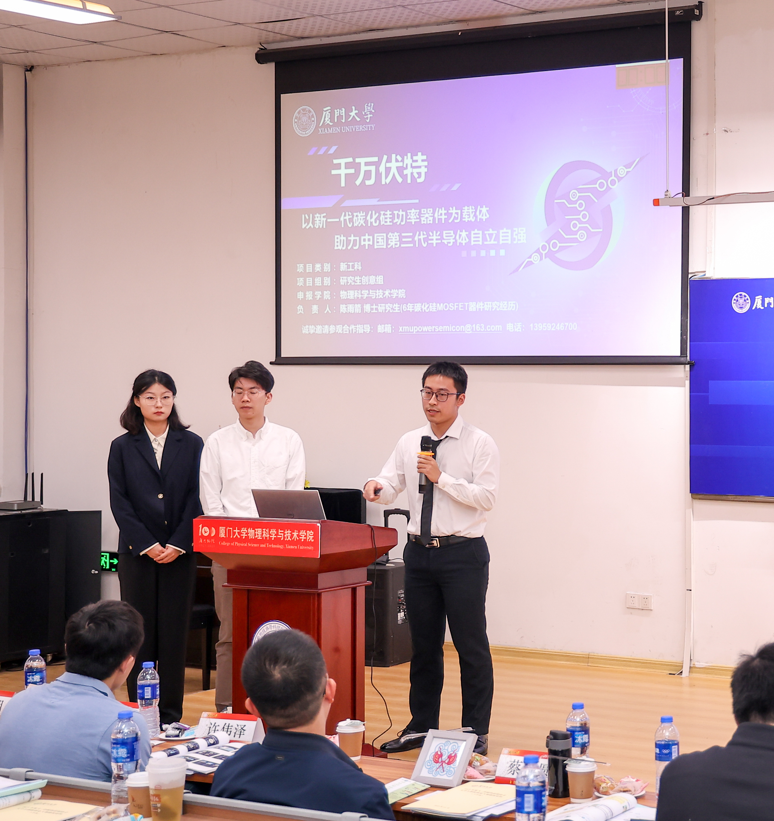 该作品由物理科学与技术学院张峰教授指导,张峰教授是青年“973”项目首席科学家,同时也是中国ALD会议秘书长,是碳化硅功率器件领域的专家,为项目的研发和市场等各方面提供了重要指导。洪荣墩,陈厦平,蔡加法,林鼎渠,邱丹文,邱宇峰等指导老师也为作品提供了重要支持。团队负责人陈雨箭为厦门大学物理科学与技术学院博士研究生,拥有多篇碳化硅基功率器件领域专利,具有丰富的碳化硅基功率器件研发经验。团队成员有张国良,黄煜,张锐军,呼殷泽,陈思田,岳良训,吴佳琳,饶灿,王雨琪,刘凡祎,朱晓钢,缪宇扬,郭红阳,王小杰,涵盖厦门大学物理科学与技术学院、经济学院、管理学院和财务管理与会计研究院的博士生、硕士生和本科生,具有强大的科研实力与创新创业能力。