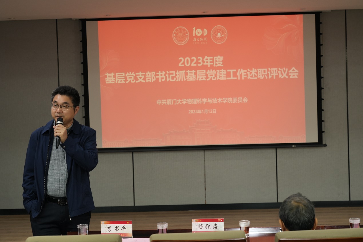 2024年1月12日,厦门大学物理科学与技术学院在物理大楼552报告厅召开了2023年度基层党支部书记抓基层党建工作述职评议会,学院党建工作联络员、学院党委委员、各支部书记和支部委员参加了会议。会议由院党委书记李书平主持。