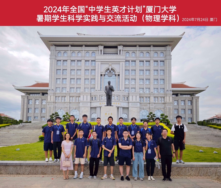 2024年7月22-24日,2024年全国“中学生英才计划”厦门大学暑期学生科学实践与交流活动在厦门大学翔安校区开展。本次活动由厦门大学物理科学与技术学院主办,有来自福建省各中学的17名厦门大学物理科学与技术学院的英才学生参加。