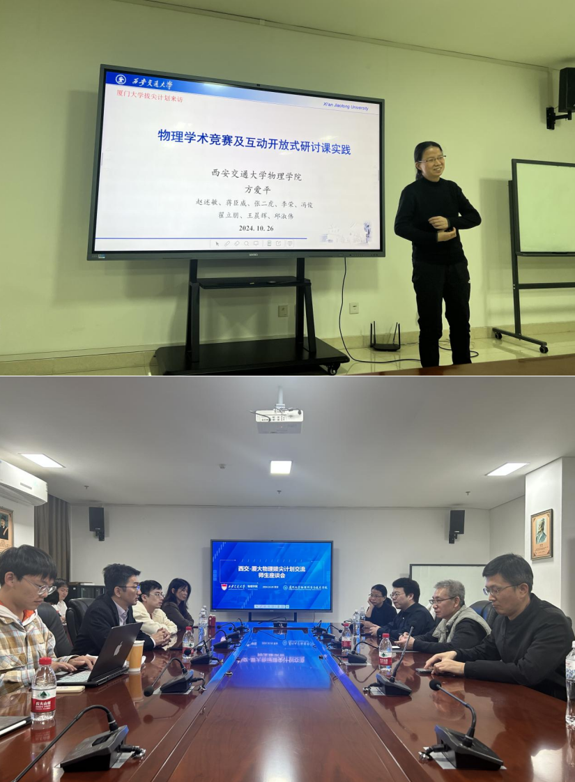在随后的座谈会上,西安交大方爱平老师详细介绍了西安交大在物理学术竞赛和互动开放式研讨课方面的成果。西安交通大学物理学院院长高宏和我院副院长吴顺情带领两校师生围绕物理学术竞赛的筹备、参赛经验以及赛事对人才培养的影响等话题展开了深入讨论。我院同学们也纷纷抒发了在本次交流活动收获和感悟,他们表示,此次交流不仅拓宽了的学术视野,也更加坚定了物理科研的信念。
