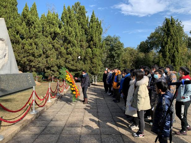 1月8日早晨,实践实习队冒着冬日的寒风抵达耀邦陵园。在讲解员的带领下,大家来到墓碑前,映入眼帘的是宏伟的墓碑和庄严的雕像。全体实践队成员进行了三鞠躬仪式,每一次鞠躬都庄重有力,每一位同学都心怀敬意。吴志明老师代表实习实践队全体师生向雕像敬献花圈并致以崇高的敬意。
