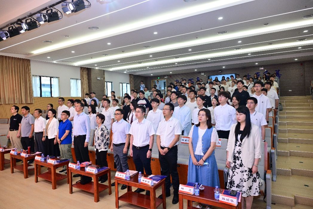 最后,全体起立,奏唱校歌。大会在校歌声中落下帷幕。