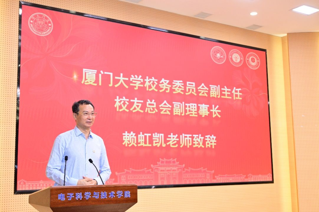 赖虹凯老师再次对长期以来鼎力支持教育事业,关注母校数学、物理、电子科学学科发展的刘晓校友及其同学表示衷心的感谢。他提到,厦大今日之发展离不开校主陈嘉庚先生“宁可变卖大厦,也要支持厦大”的铮铮誓言,离不开全校师生齐心协力、披荆斩棘的团结开拓,更离不开校友的倾力协助和添砖加瓦。我们要以优秀前辈为榜样,为祖国的建设和发展肩负起更多的使命和责任,始终朝气蓬勃,不断砥砺前行,做有理想、有情怀、有本领的厦大人。