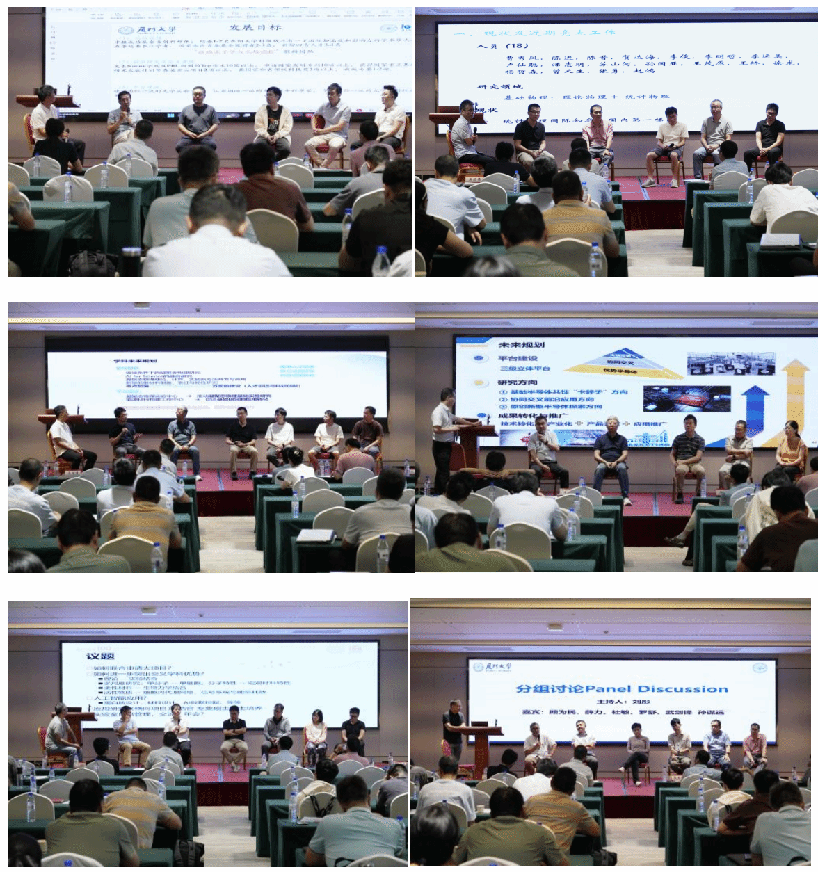下半场的活动围绕会议主题进入学科方向汇报与研讨环节。理论物理方向代表王矫、凝聚态物理学科带头人蔡伟伟、光学方向代表李艾华分别就各学科的研究进展、现存问题与未来规划作了汇报。每场汇报后均设有嘉宾互动环节,邀请多位教师上台进行头脑风暴和深入探讨。