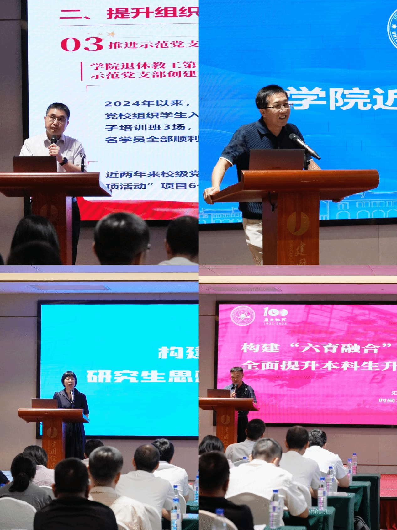 随后学院党委书记李书平、院长陈张海,党委副书记沈丽秀、郑诚明,副院长顾为民,学院王行之老师,副院长吴顺情,工程中心副主任李恒分别就学院党建、学院整体工作、研究生培养、本科生培养、科研、本科生教学、研究生教学、实验工程中心工作进行了系统汇报,并提出推进学院高质量发展的具体措施。