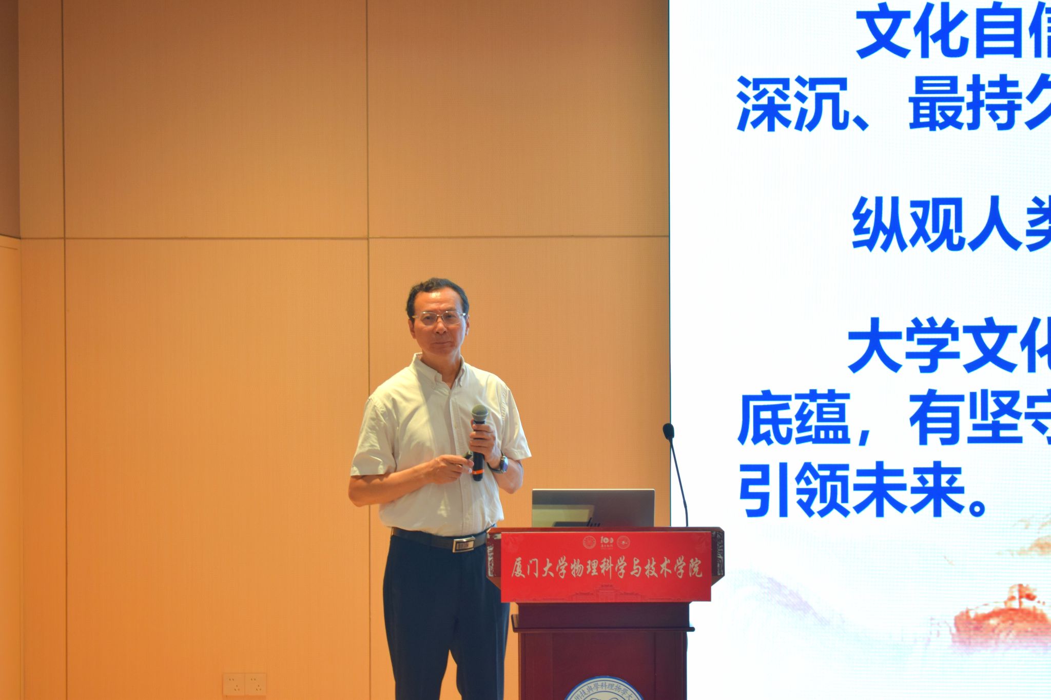 “不忘来时路,方知向何行。”为帮助2025级研究生新生深入了解厦门大学校史校情,引导新生从百年校史中汲取精神滋养,继承和弘扬以爱国、奉献、自强为核心的嘉庚精神,9月4日上午,厦门大学2025级研究生新生入学教育--校史校情专题讲座在海韵园物理大楼117报告厅举行。厦门大学原党委副书记、校关工委常务副主任、校友总会副理事长、物理科学与技术学院院友赖虹凯应邀作题为《重温百年校史 厚植家国情怀 强化使命担当》的讲座,为全体研究生新生奉上了一场沉浸式的“大思政课”。学院党委副书记沈丽秀主持讲座。