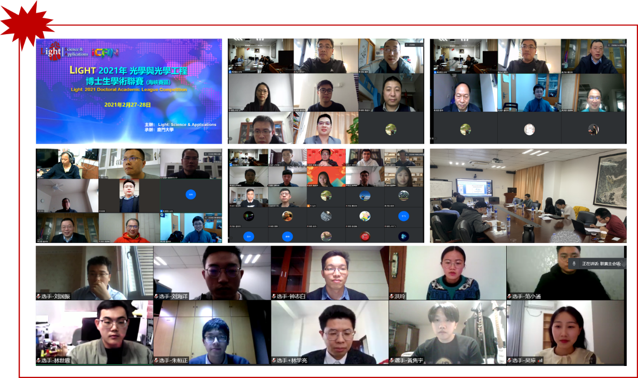 联赛在筹备期间邀请了海峡两岸光学领域知名专家组成主席团,赛前对赛事进行了广泛宣传和报名材料初审,最终共有来自6所高校的21名博士研究生入围联赛。大赛分两天线上进行,评委、导师、博士生进行的精彩报告和热烈的讨论,碰撞出许多科学技术研究的思想火花。