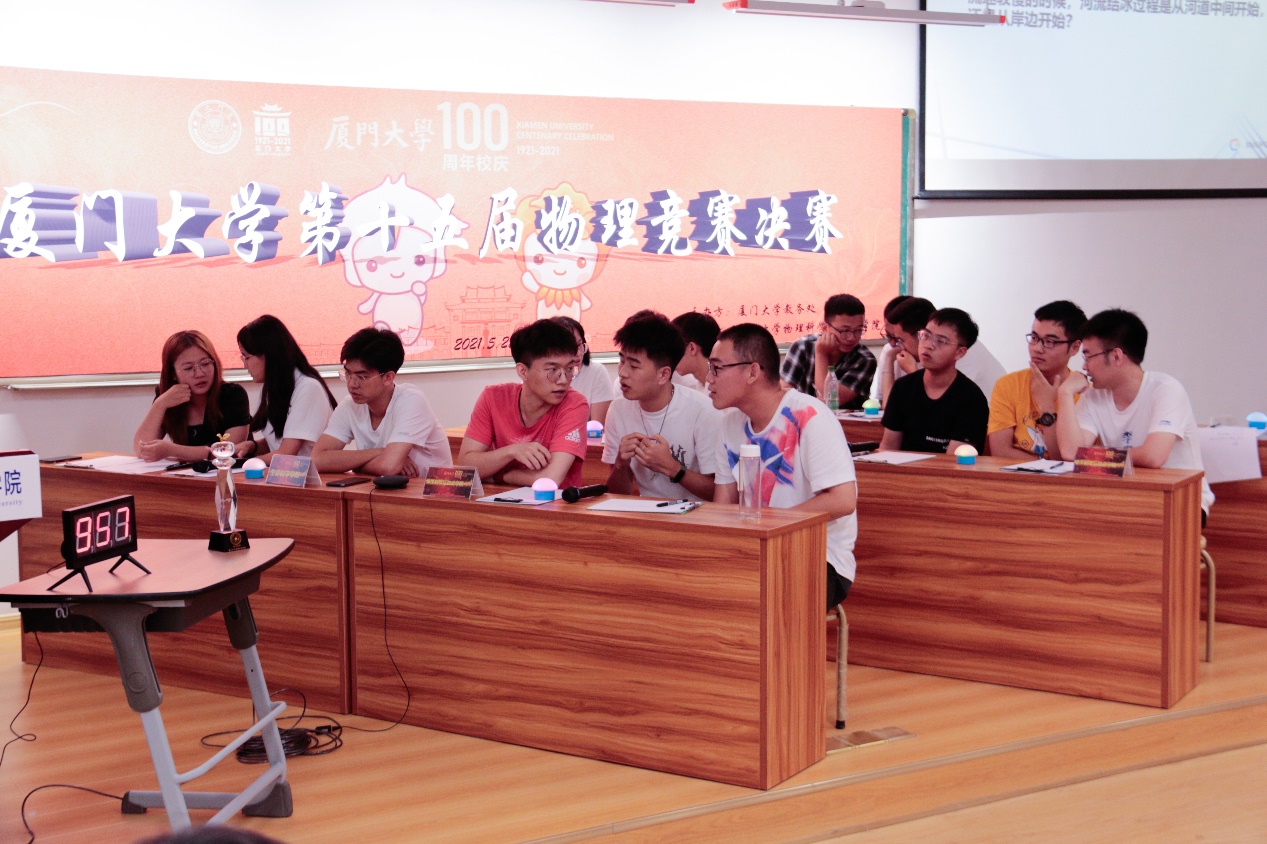 为了倡导对基础学科的重视,激发同学们学习物理的兴趣,由教务处主办,物理科学与技术学院承办的第十五届物理竞赛(XMUPC15)总决赛于2021年5月22日晚上在物理大楼117报告厅顺利举行。比赛有超过200名学生线下观摩,同时也在bilibili平台直播,赛事引起了同学们广泛关注。现场观众为选手的精彩表现欢呼不断,气氛热烈、情绪高昂,