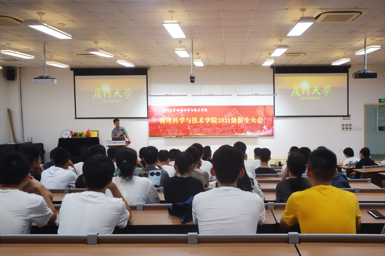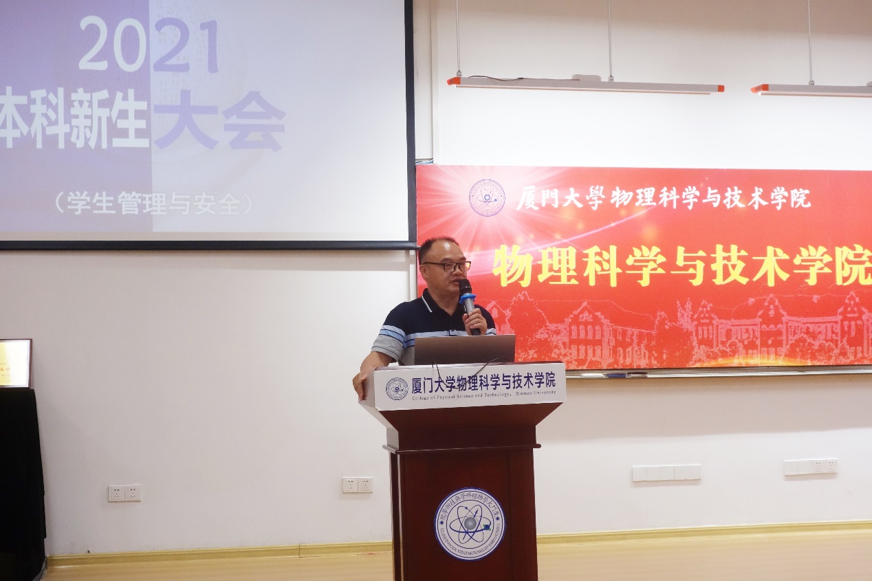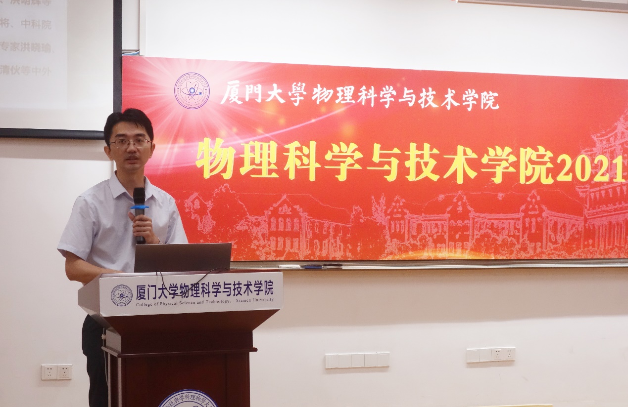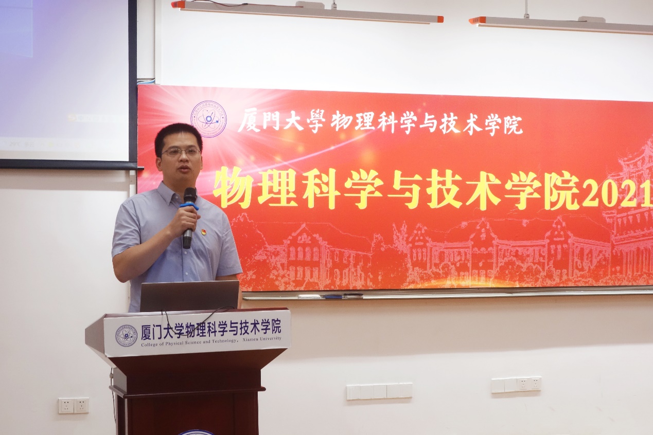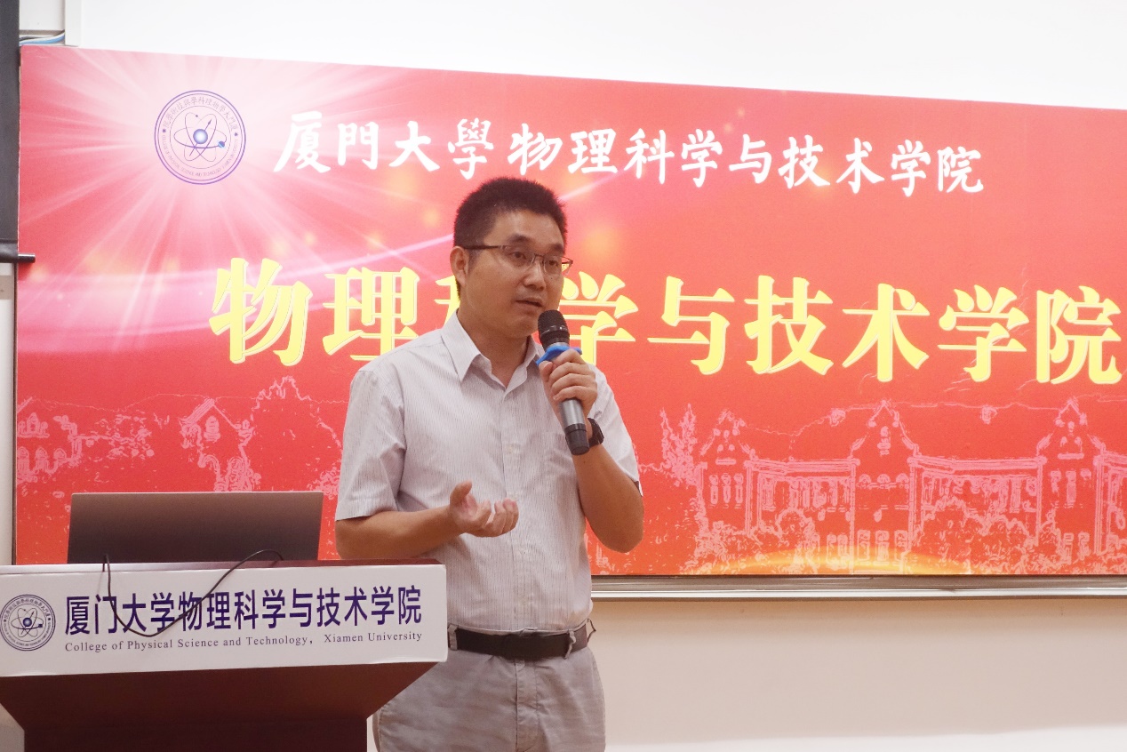 首先,由陈理想副院长介绍学院概况。他讲述了厦门大学物理学科的办学历史,学院的师资力量、科研水平、人才培养和管理体系。2023年,物理学科将迎来的100周年,陈副院长号召全体师生在这个契机乘势而为,努力发展物理学科。陈副院长也是今年物理强基班的班主任,他看到了新生蓬勃的精神气,倡导大家积极了解专业学术研究方向,找到个人发展目标,坚定信念,不忘初心,及时适应从高中到大学的时空变换和角色切换,在新的人生起点谱写更辉煌的篇章。