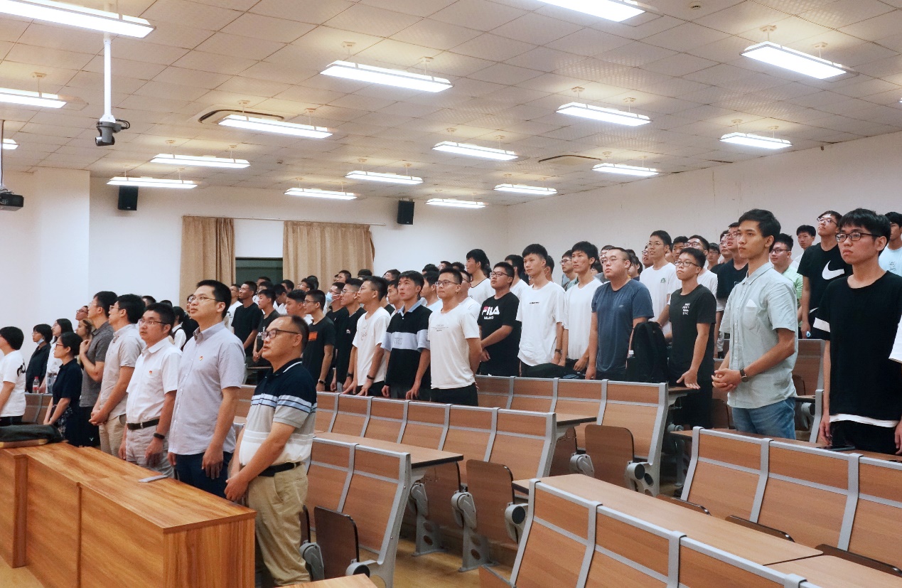 在本届新生大会的尾声,辅导员赵梁杰带领大家观看厦大毕业生原创歌曲《凤凰花开的路口》,并共同起立奏唱校歌。至此,2021级新生大会圆满落下帷幕。新学期,新起点,自强不息,止于至善。