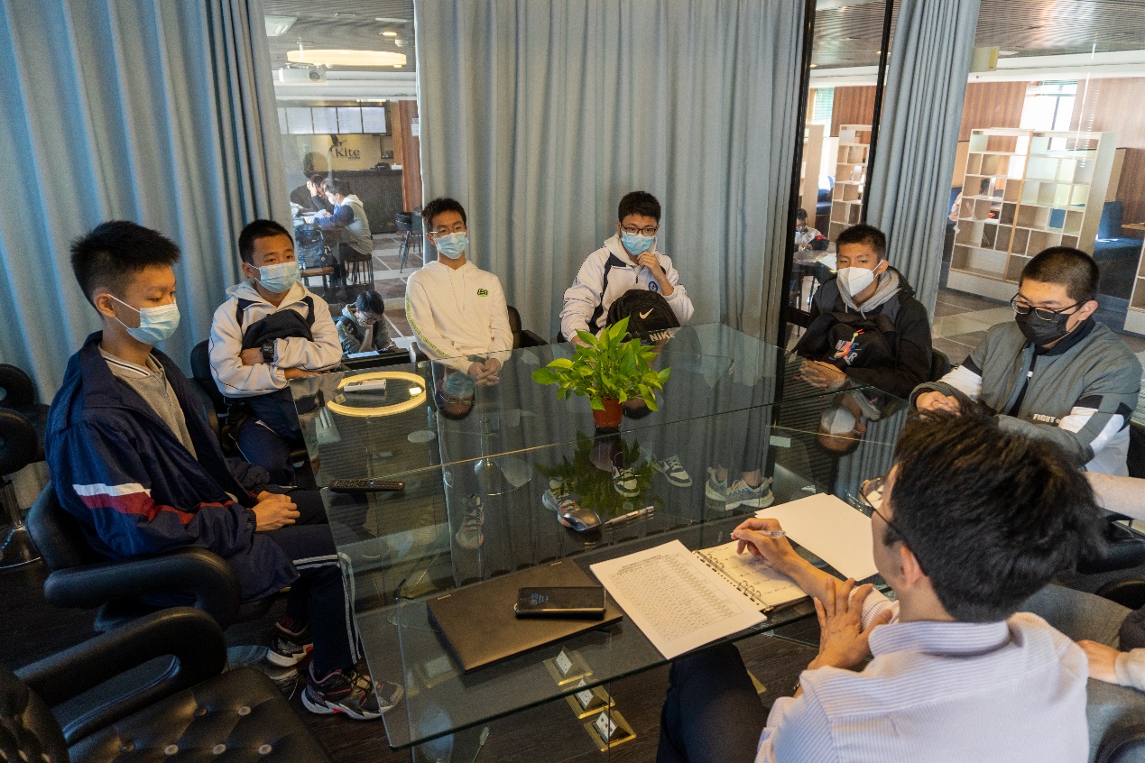 面试开始,学生依次进行自我介绍,简述自己的成绩、兴趣爱好等,让老师们对他们有了初步的认识。面试老师则根据同学们的自我介绍,针对同学们感兴趣的事情进行深入提问。