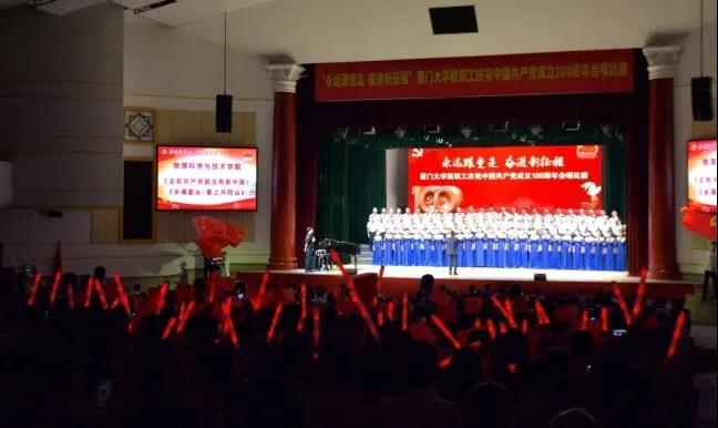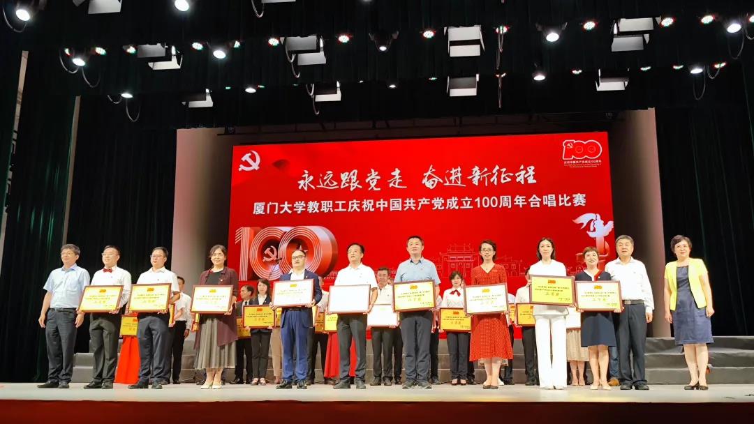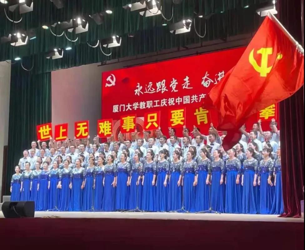 为庆祝中国共产党成立100周年,凝聚新百年征程团结奋进精神力量,展现教职工奋发进取的精神风貌和新百年共筑新伟业的坚定信心,由中共厦门大学委员会主办,校党委组织部、校党委宣传部、校工会承办的“永远跟党走,奋进新征程”厦门大学教职工庆祝中国共产党成立100周年合唱比赛,6月26日、27日在建南大会堂隆重举行。
