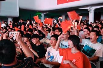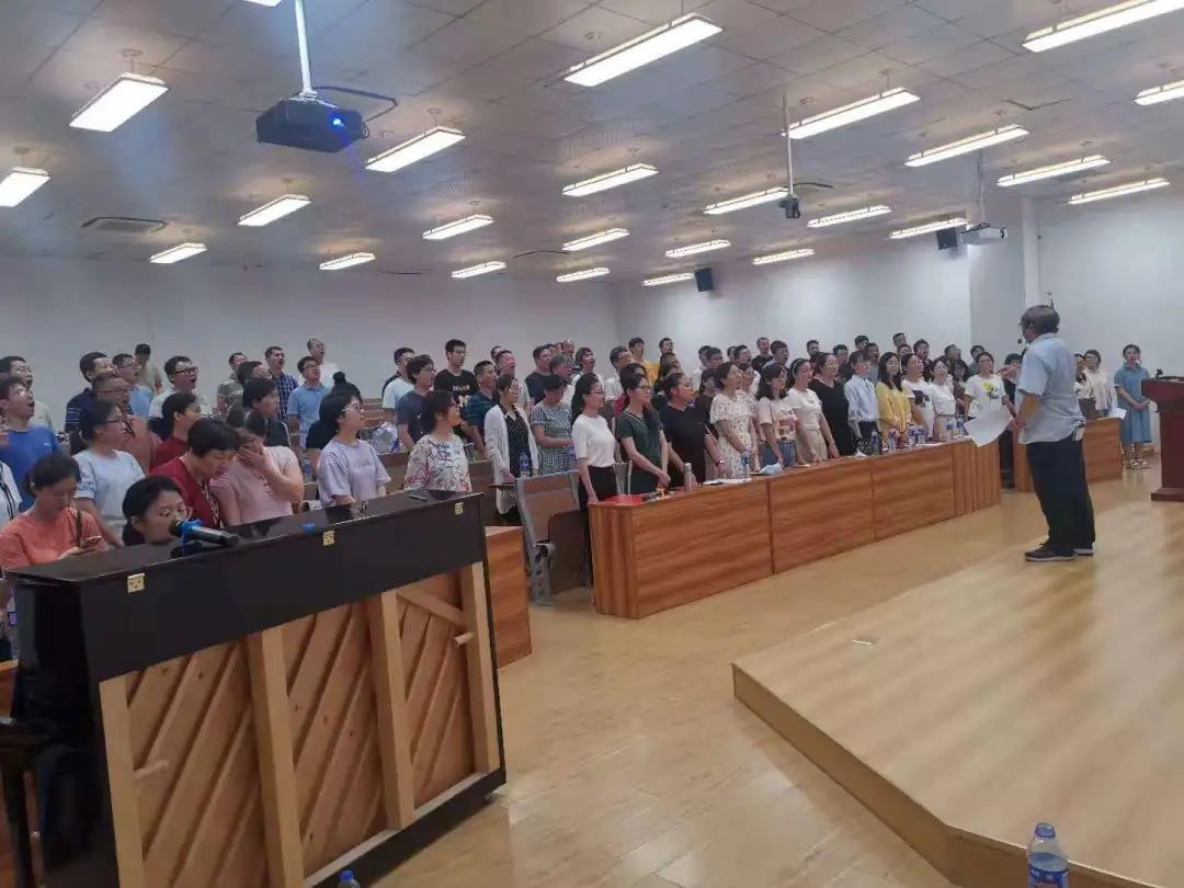 在老师们雄浑磅礴的歌声渲染下,同学们挥动手中的国旗、挥舞手中的荧光棒,随着律动的音乐,与台上老师共同歌唱,祝福伟大祖国,共庆党的生日。
