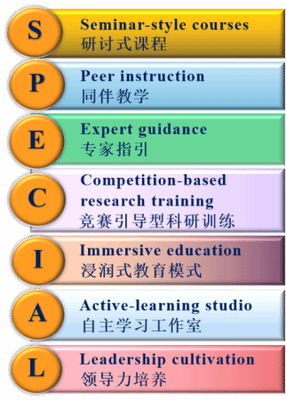在培养环节,物理学科拔尖计划与强基计划统筹培养,采取“SPECIAL”特色培养模式。此外,学生将在导师的指导下自主设计、制定学习计划,包含物理学学科核心课程,跨学科、跨年级、跨层次选修课程、荣誉课程的安排等,以及科学研究、国内外名校访学等个性化培养方案。