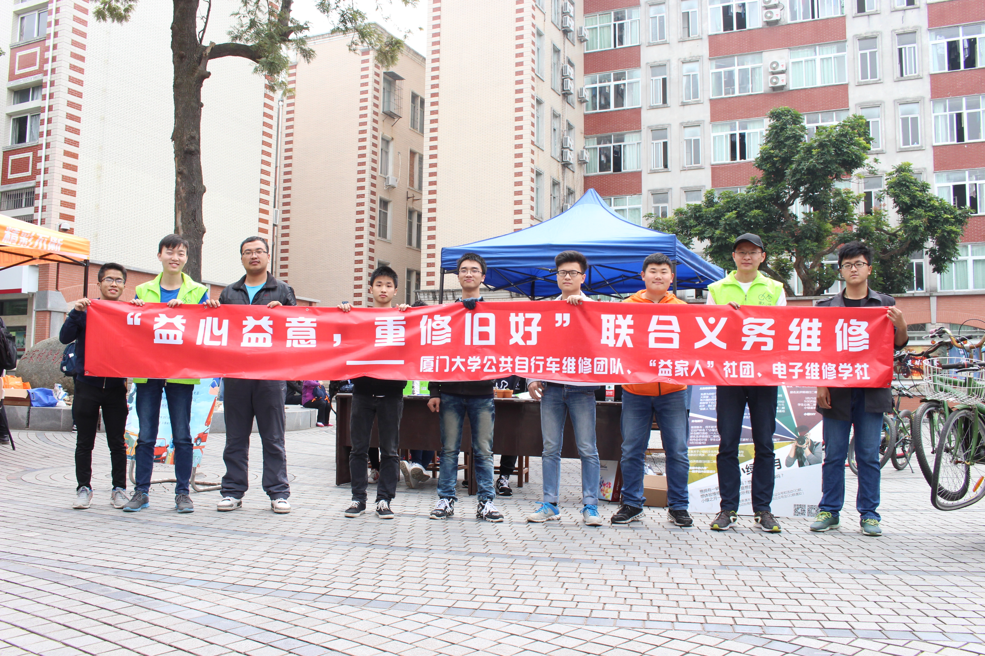 三月十八日,又是蒙蒙细雨笼罩着厦门,厦大校园里,却别有一番生动的景象——厦大“小绿”公共自行车维修团队、电维社、益家人正在三家村联合举办义务维修活动。这次活动和以往举办的一样,以“绿色生活,公益助人”为主旨,本着更好地为全校师生服务的信念,赢得了老师同学们的一致好评。