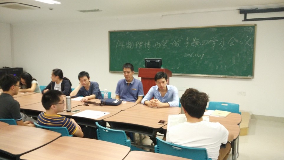为了贯彻落实党的十八大精神,推动“两学一做”学习教育的深入开展,2016年11月19日中午12时30分,物理系2014级博士生党支部在海韵物理科技学院552教室开展了一场题为“牢记党规党纪,守住为人、做事的基准和底线”的“两学一做”学习教育,活动由党支部书记林伟毅主持。