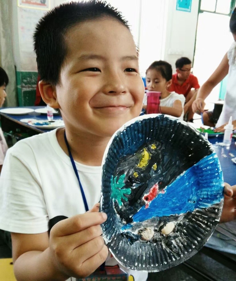 实践队还在长汀县第二实验小学开展为期两天的支教活动。实践队为孩子们准备了丰富多彩的课程,包括历史故事、音乐、绘画、素质拓展等等。通过讲解历史,孩子们对清代的历史有了些许理解。孩子们知道了要铭记国耻,更要刻苦努力的学习,争取为祖国富强献出自己的一份力量。在手工课和音乐课上,我们带领孩子们在纸盘上画画。小朋友们画出了“沙滩海岸”、“河流小船”,色彩繁多、创意频出,颇有小艺术家的风采。在充满童真、富有想象的绘画中,我们仿佛看到了自己的童年,充满感动与遐思之余,也为孩子们的率真与创造力所折服。短短的两天支教,实践队员收获了很多,与孩子们也结下了深厚的友谊。