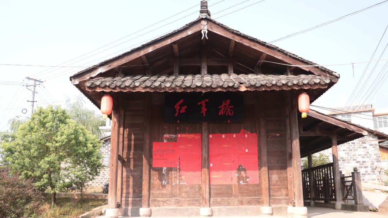 队员们还参观了中复村村部前方的雕塑墙、红军桥、古官道、“长征从这里开始”陈列馆。村部前方一面二十几米的墙壁上再现了当年“塘背暴动”、打土豪、分田地、听毛主席讲故事等情景。红军桥是一座见证了英勇红军慷慨赴死的不归桥。桥两头连接着历史悠久的古官道。由于地处交通要道,这座桥从前是红军的征兵处,也是红军战斗的出发地。当年一幕幕“父送子,妻送夫,兄弟争当红军”的感人场景,当年硝烟弥漫中红军义无反顾地踏上战场的壮伟画面,在村干部的讲解下愈发鲜活。大家站在这风雨廊桥上,听着“一家送六子当兵”的历史,看着桥上斑驳的痕迹,内心澎湃、激动不已。