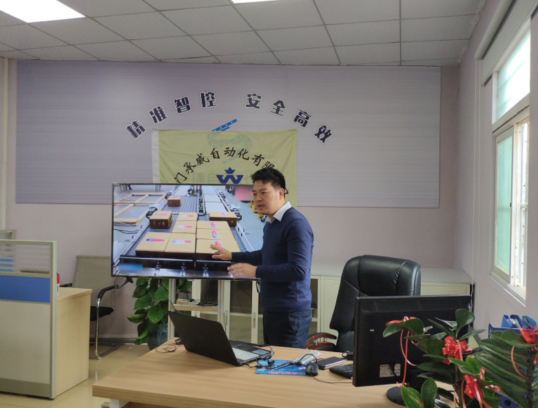 充满新鲜,充满好奇,满怀期待,一个小时的车程,大家来到了厦门承威自动化有限公司。一到公司,我们就受到了企业的热烈欢迎。据了解,厦门承威自动化有限公司是我们的学长林艺景于2010年创办的。首先,林艺景总经理简单为大家介绍公司的概况,然后便为大家详细讲解了“物流输送线的运用”。屏幕上机械装置在快速运转,“要发展,先画线。”林总通过视频、PPT演示,为我们介绍了物流线是如何简化劳动力的,机械化分工物流线有什么好处、自动挑捡线、分捡线、立体化仓库等等,以此向我们引出电气自动化对于当下生活的意义。我们熟知的网上购物物流线运输,无不渗透着电气自动化的应用。小到一个家庭,大到一个社会,都离不开这些专业人才的工作。林总满怀热情地跟我们分享着他对这个行业的热爱和对未知挑战的决心与期待。自动化,是物流中不可或缺的一部分,是物流系统中的筋脉、血管。同学们听完感受颇多,积极地与林总沟通交流,林总也亲切地为同学们答疑解惑。