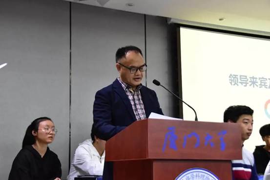 开场,物理科学与技术学院党委副书记郑诚明老师上台致辞。郑诚明老师指出,—年一度的厦门大学物理竞赛,是物理科学与技术学院为全校同学学习物理、感受物理奥秘,精心搭建的第二课堂。在厦门大学教务处的大力支持下,此项赛事自创办至今,已经走过了十四个年头,学院本着“以赛促学、研学融合”的理念,构建了一个从中学、本科、研究生纵向贯通横向融通的人才培养矩阵和教学相长的学科范式。相信今晚的大赛将会是一次激烈而精彩的大赛,期待同学们赛出风格!赛出水平!