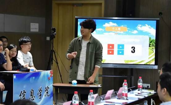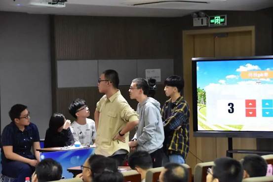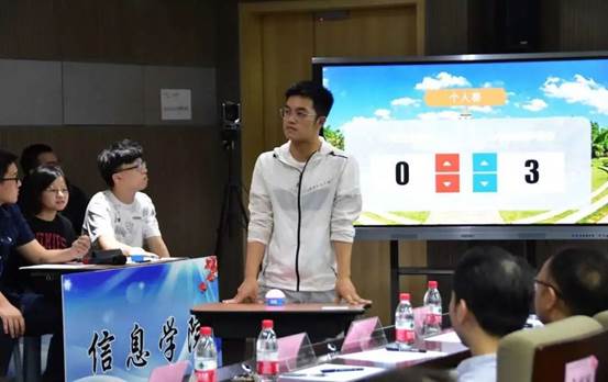 比赛开始,6位选手依照初赛排名,由后至前逐步进行1v1抢答pk。铿锵迅速的按下答题器,选手们沉稳地对一道又一道题进行回答。望着大屏幕,在场的每一位老师和同学们都在仔细思考着。选手们大脑飞速运转,保持沉着冷静。车轮式淘汰,只有强者才能一站到底。