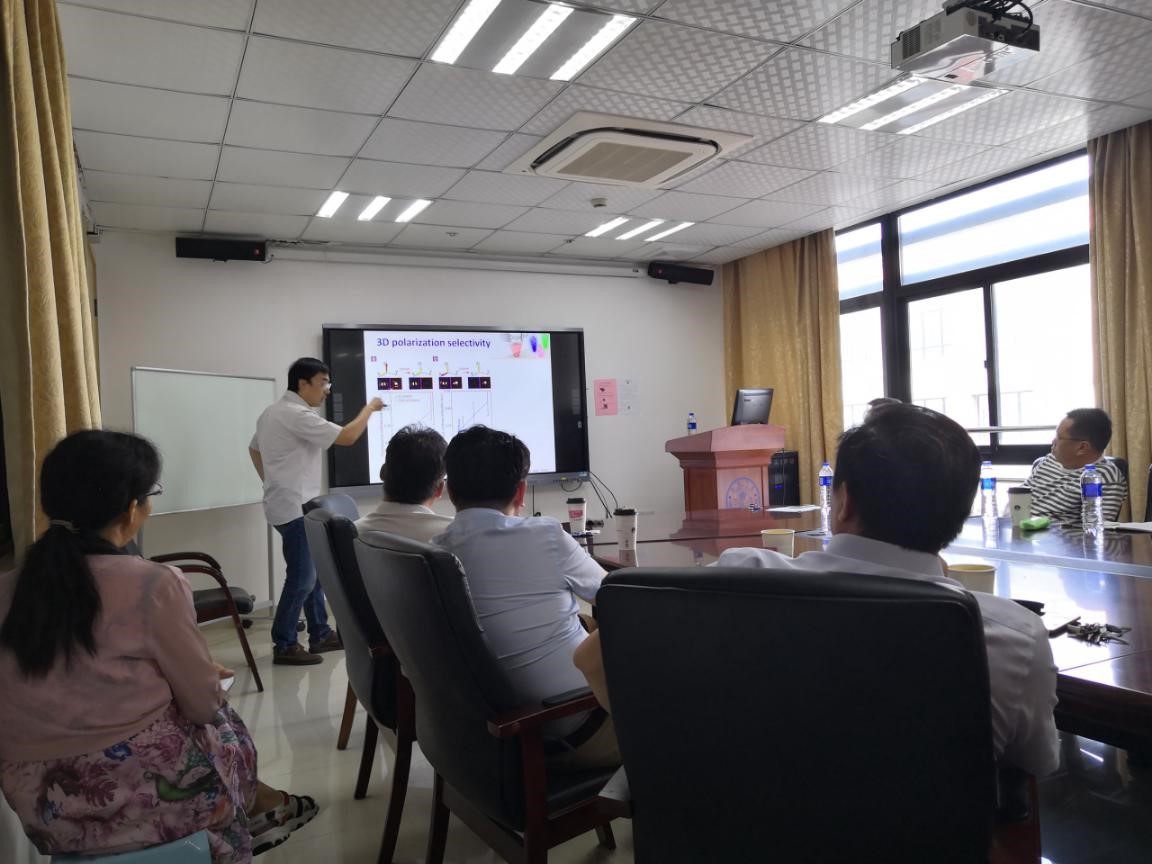 陈理想教授首先向大家介绍了李向平教授的学术经历以及在研究领域所取得的科研成绩。从大学本科到博士毕业,李教授用11年的时间诠释了什么是“钻研”,用11年时间打下来深厚的学术研究基础,也用11年时间感悟到科研工作的深厚内涵。2002年李向平毕业于南开大学物理学院,2005年获得南开大学现代光子研究生硕士学位。2005年,李向平赴澳大利亚撕威本科技大学微光子中心攻读博士学位,师从澳大利亚两院院士顾敏教授,从事纳米光子学及存储技术的研究。李老师现任暨南大学光子技术研究员研究员、博士生导师,2011-2014年获得澳大利亚研究委员会优秀青年项目资助。2013年荣获维多利亚州政府优秀青年称号。2014年10月再次荣获澳大利亚研究委员会优秀青年项目资助。2015年荣获基金委优青人才计划资助. 主要研究领域包括纳米光子学、表面等离激元光学、超分辨激光加工以及超大容量光存储。在包括Science, Nature Photonics, Nature Communications, Light Science & Applications,Science Advances 等国际期刊发表论文超过60篇。