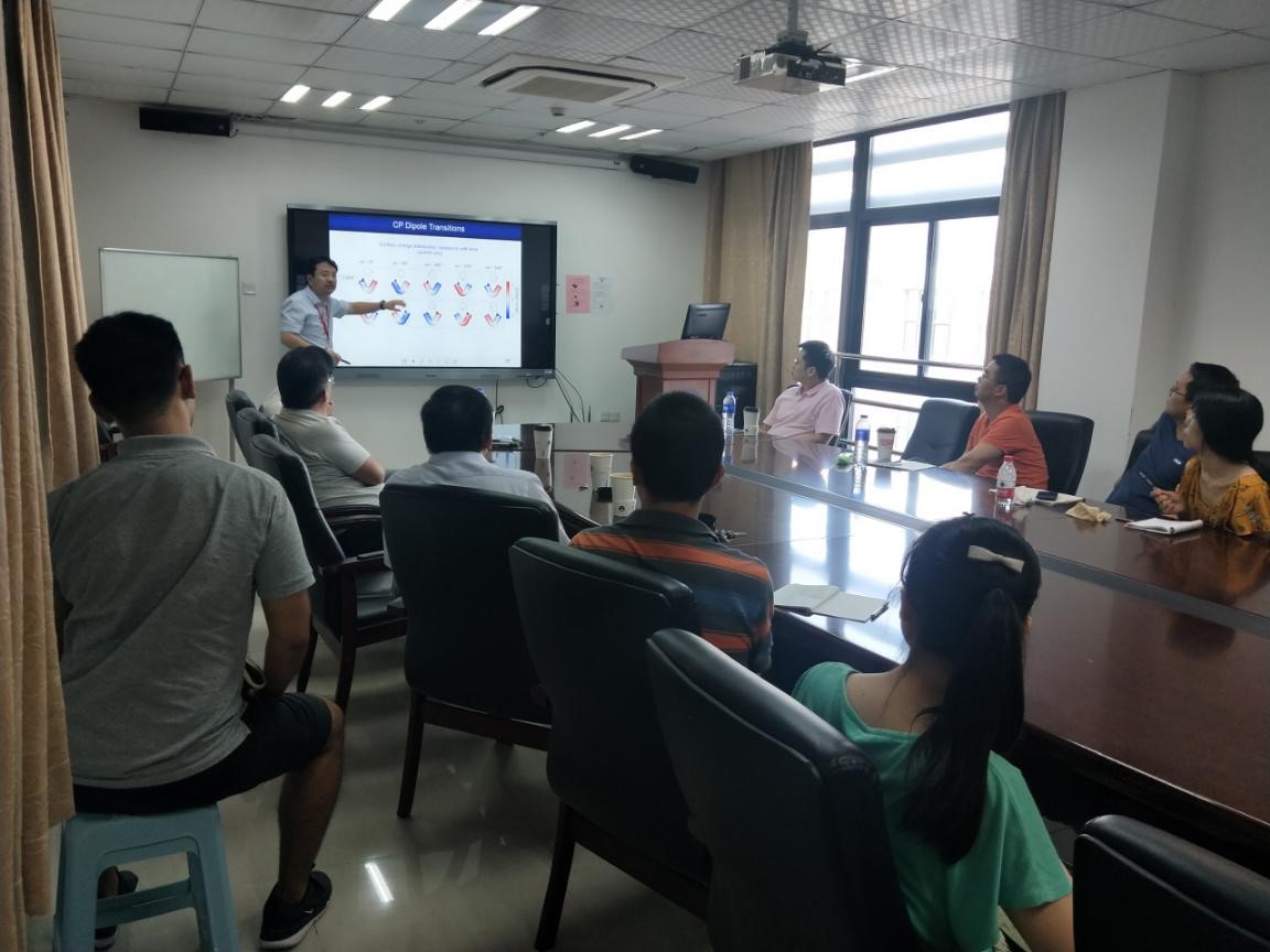 报告中,方老师提出光与物质相互作用作为量子光学的一个新兴方面,通过对光子发射相互作用的纳米级开发,使纳米光子学中的特殊物理现象和先进应用得以实现。在电子束与平面波激发相互作用的指导下,引入阴极发光(CL)显微镜检测手性等离子体纳米结构中的红光效应,进一步实现了手性阴极发光在亚纳米尺度上的显示和控制。此外,CL显微镜可以提供更好的物理洞察红光效应,并发现新的红光现象,这些现象在纳米结构的近场中很难被远场光学表征方法检测到。此外,利用CL纳米拷贝可以在纳米尺度上成像等离子体纳米结构中的手性辐射LDOS分布,它直接反映了量子发射器的手性辐射自发衰变。报告会后,方老师和与会师生就相关问题进行了深入交流。