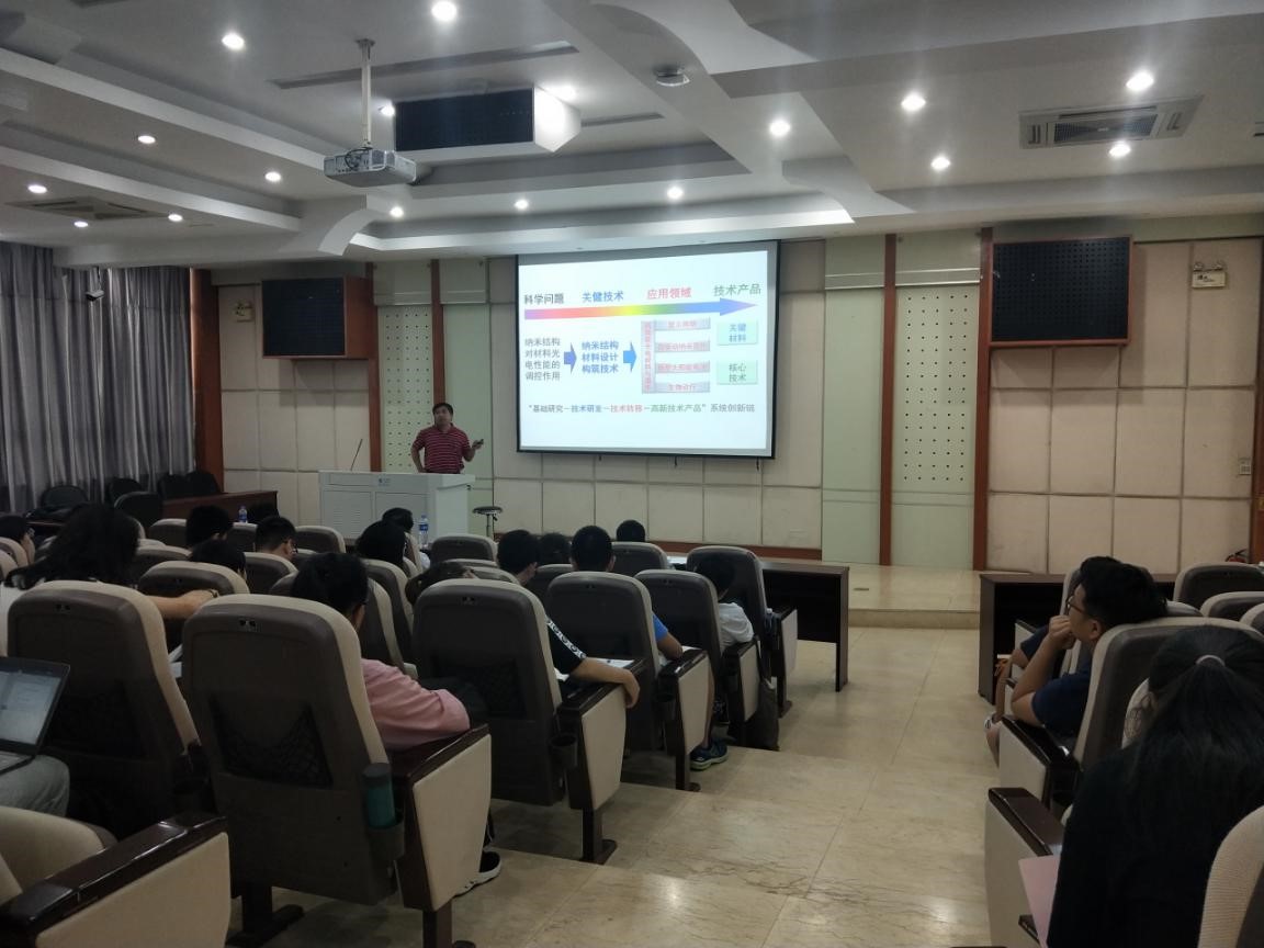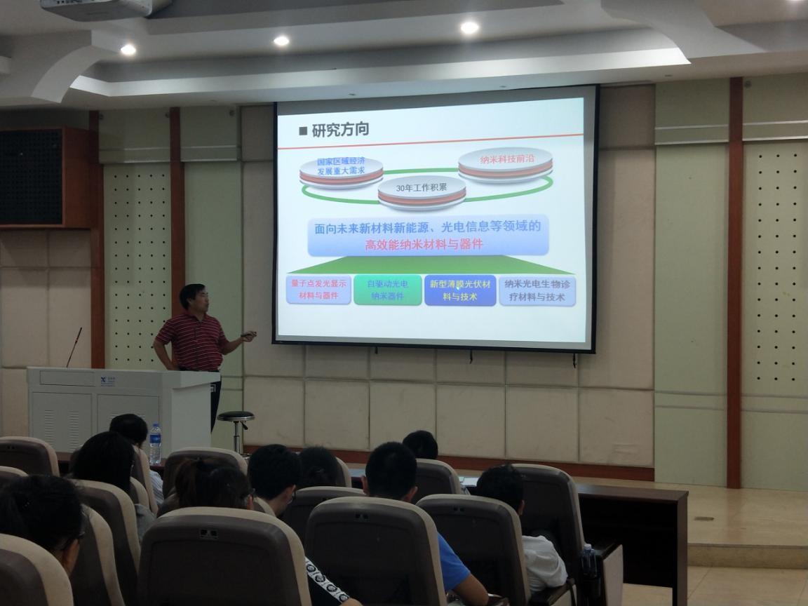 报告中,杜祖亮教授从纳米结构光电材料与器件的背景讲起,介绍了纳米结构材料的设计、构筑及其光电性能与器件等方面的工作,包括自驱动纳米光电器件、铜基薄膜光伏电池、纳米光电生物诊疗和量子点发光显示材料与器件等。