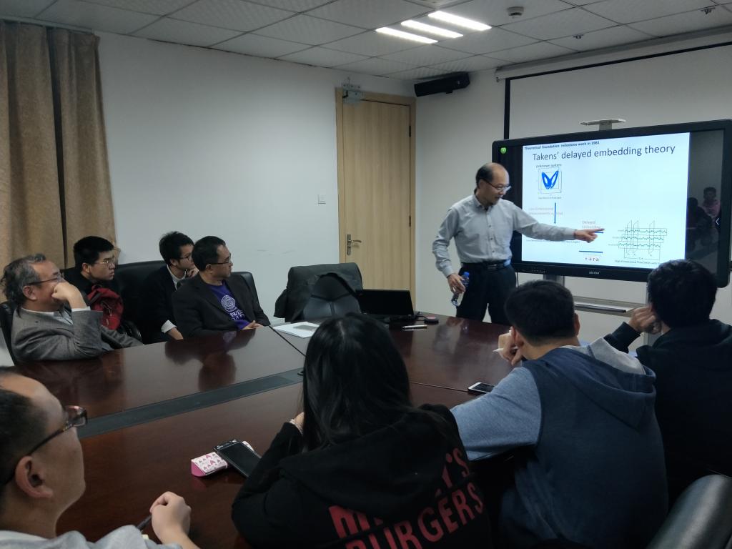 2019年1月8日下午中国科学院上海生命科学研究院陈洛南研究员应厦大物理科学与技术学院帅建伟教授的邀请,来我系进行学术交流,并在物理大楼307会议室为广大师生做题为“Predicting future dynamics by randomly distributed embedding based on data of small samples”的学术报告,物理科学与技术学院相关师生参加了此次报告会。
