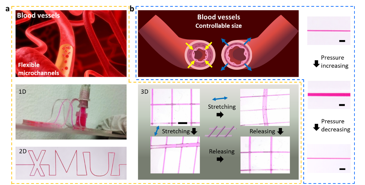 多维度仿生柔性微通道系统,且孔径可调控。
