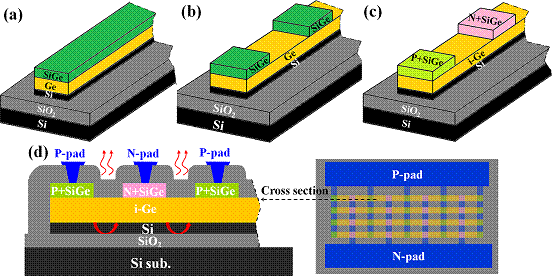 图:SOI基横向锗/锗硅异质结构发光二极管结构示意图