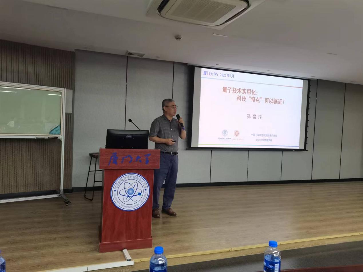 2023年7月18日下午,中国科学院院士、原中国工程物理研究院研究生院院长孙昌璞院士应邀做了题为 “量子技术实用化:科技‘奇点’何以临近?”的“萨本栋讲坛”系列学术讲座暨南强系列讲座1191期。讲座设在海韵园物理楼552报告厅,由物理科学与技术学院院长陈张海教授主持。
