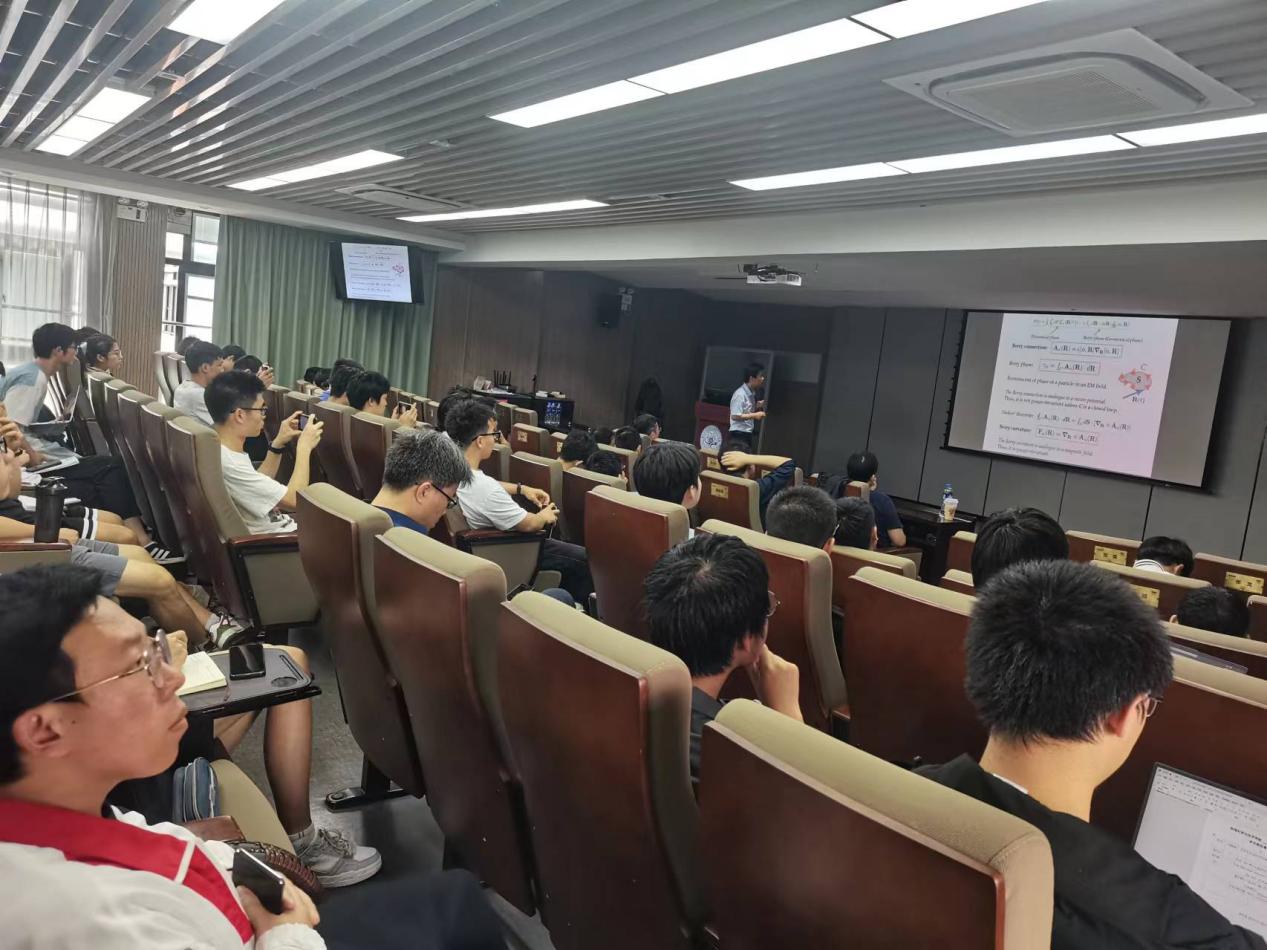 报告的最后,廖志敏教授就最新应变调控单层WSe2中的贝里曲率偶极矩、轨道磁化与非线性霍尔效应等问题,与现场观众进行了互动交流。