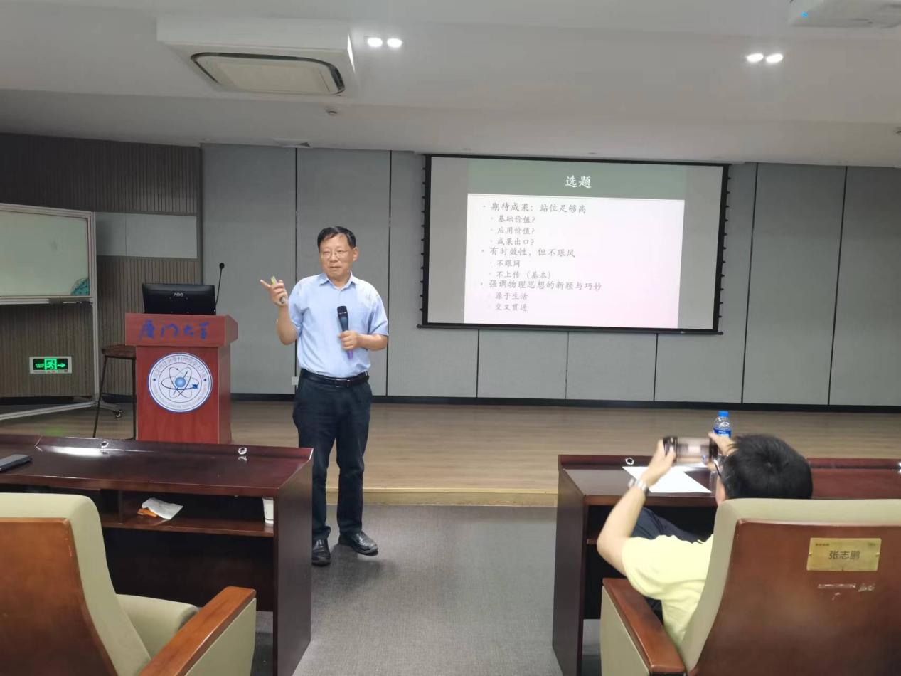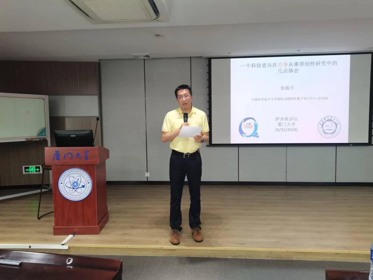 2024年5月31日,厦门大学物理科学与技术学院“萨本栋讲坛”系列讲座第167期在厦大海韵园校区物理楼552报告厅顺利举行。本次讲坛由物理科学与技术学院院长陈张海教授主持,中国科学技术大学杰出讲席教授、严济慈讲席教授张振宇以“一个科技老兵在力争从事原创性研究中的几点体会”为题进行了深入讲解。学院师生100余人参加了讲座。