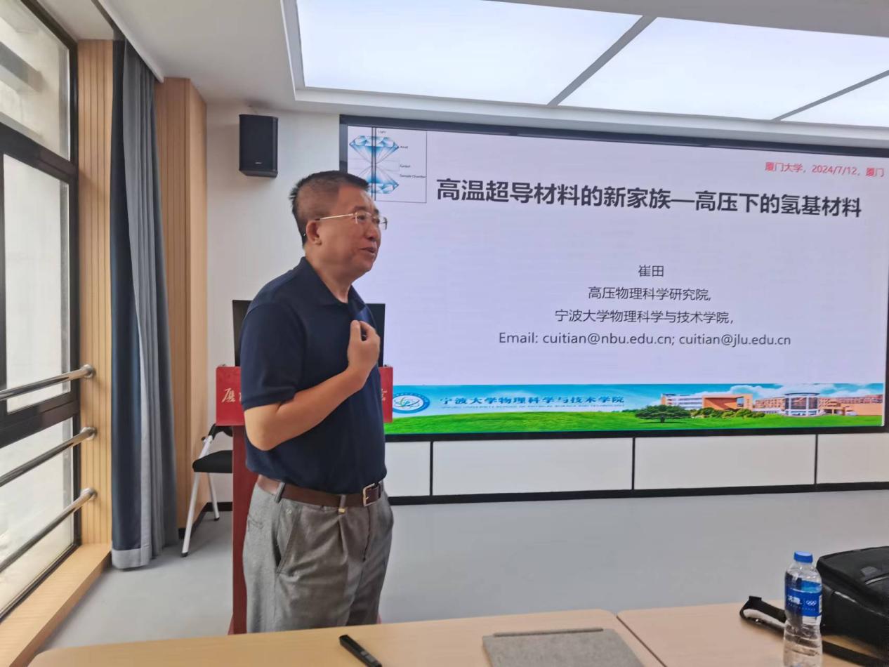 2024年7月12日,宁波大学物理科学与技术学院特聘院长、高压物理科学研究院院长崔田教授受邀在海韵校区物理楼223报告厅作了主题为“高温超导材料的新家族—高压下的氢基材料”系列讲座第174讲。本次讲坛由厦门大学物理科学与技术学院院长陈张海教授主持。