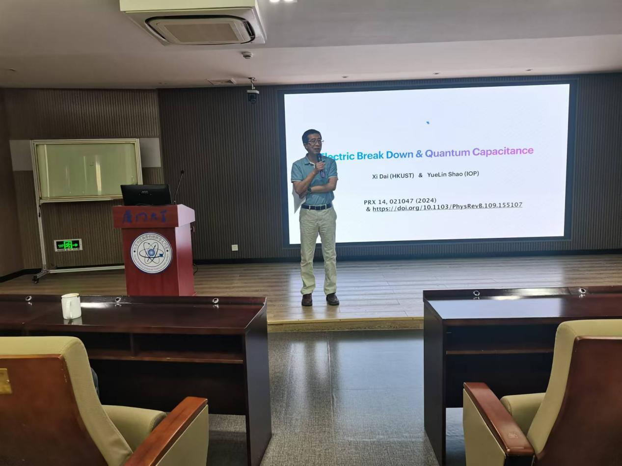戴希教授首先介绍了材料中电子和空穴配对形成束缚态,进而形成激子绝缘体和激子超流的物理机制,他回顾了这一领域在理论上的发展历史,并列举了近年来激子绝缘体态的几个重要实验证据,包括量子电容和完美库伦拖曳等。接下来,戴希教授介绍了自己近期的工作:类比齐纳二极管的“电击穿”,他与合作者提出了称为“多体击穿”一种新的电击穿机制,其来自激子凝聚基态波函数在外场下的失稳。最后,戴希教授“头脑风暴”式地展望了该领域的未来发展前景,并鼓励年轻人努力在其中做出自己的贡献。