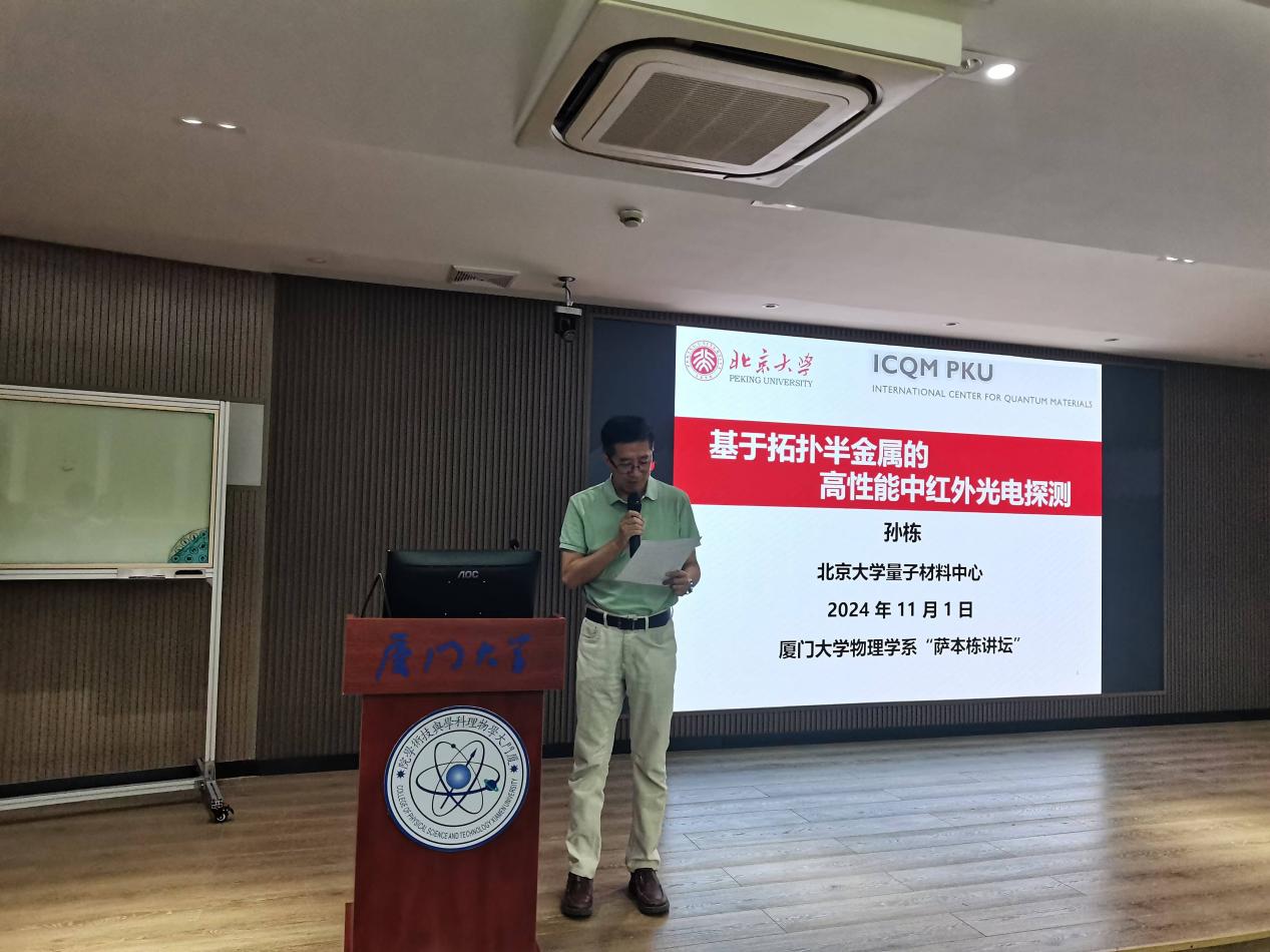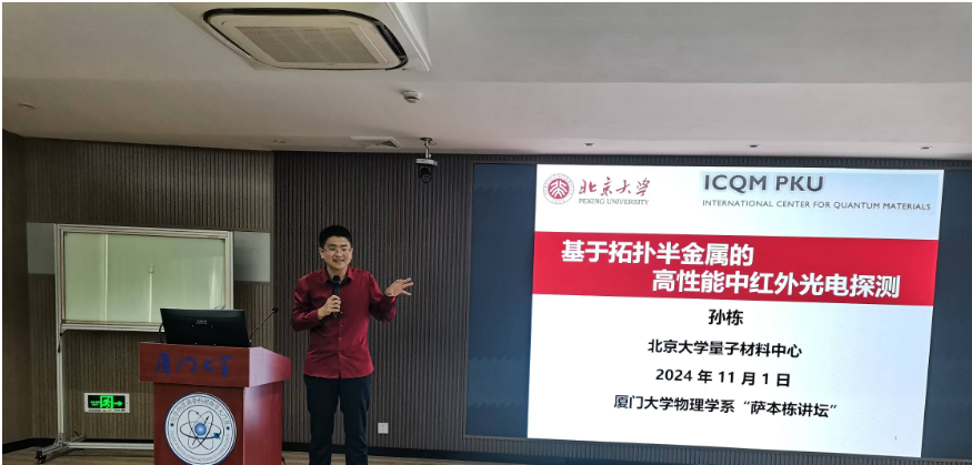 2024年11月1日,北京大学物理学院量子材料中心的孙栋教授应邀在海韵校区物理楼552报告厅作了主题为“基于拓扑半金属的高性能中红外光电探测”的萨本栋系列讲坛第181讲。本次讲坛由厦门大学物理科学与技术学院院长陈张海教授主持。