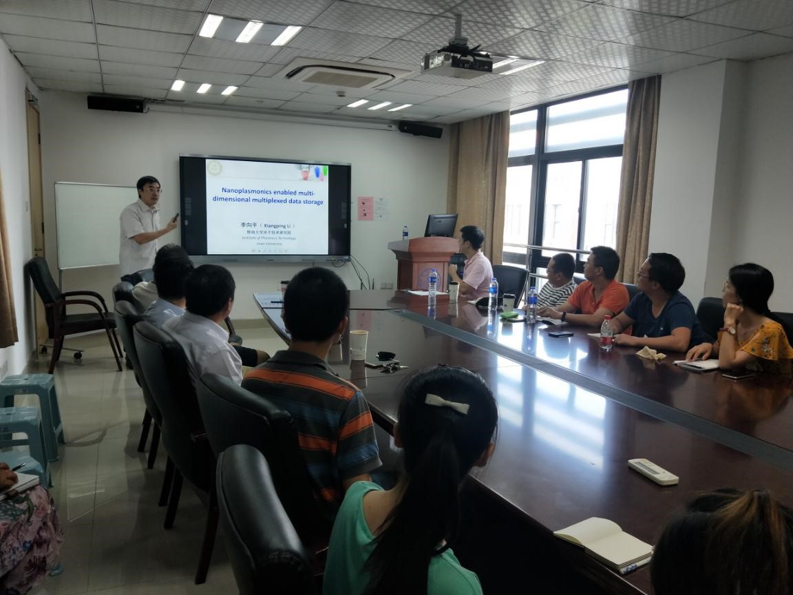 报告中,李向平教授介绍了表面等离子体纳米结构及纳米复合材料介导的光子多维复用存储技术在超大容量光存储技术中的最新进展。通过对金属纳米棒中等离子体共振的研究以及随后的光热整形机理,信息可以在光的物理层中进行复用和信道编码。它使光记录具有数量级的容量增加和安全性。此外,李教授还展示了能够在多维自由空间中操纵光场的等离子体纳米结构以及课题组的最新研究成果。