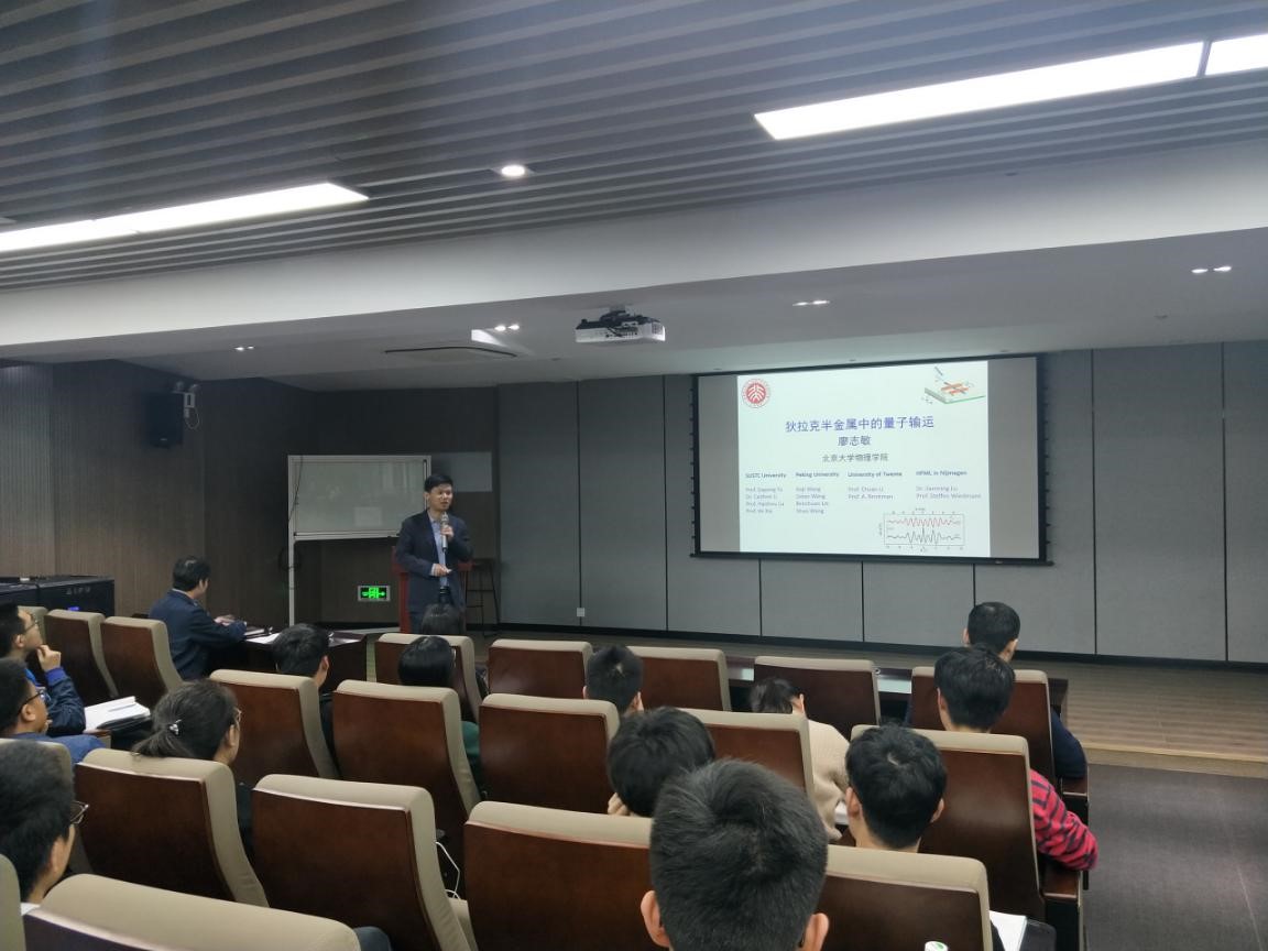 3月22日下午,北京大学廖志敏教授应厦大物理科学与技术学院康俊勇教授的邀请,来我系进行学术交流,并在物理大楼552会议室为广大师生做题为“三维狄拉克半金属中的量子输运”的学术报告,吴志明教授担任主持人,物理科学与技术学院相关师生参加了此次报告会。
