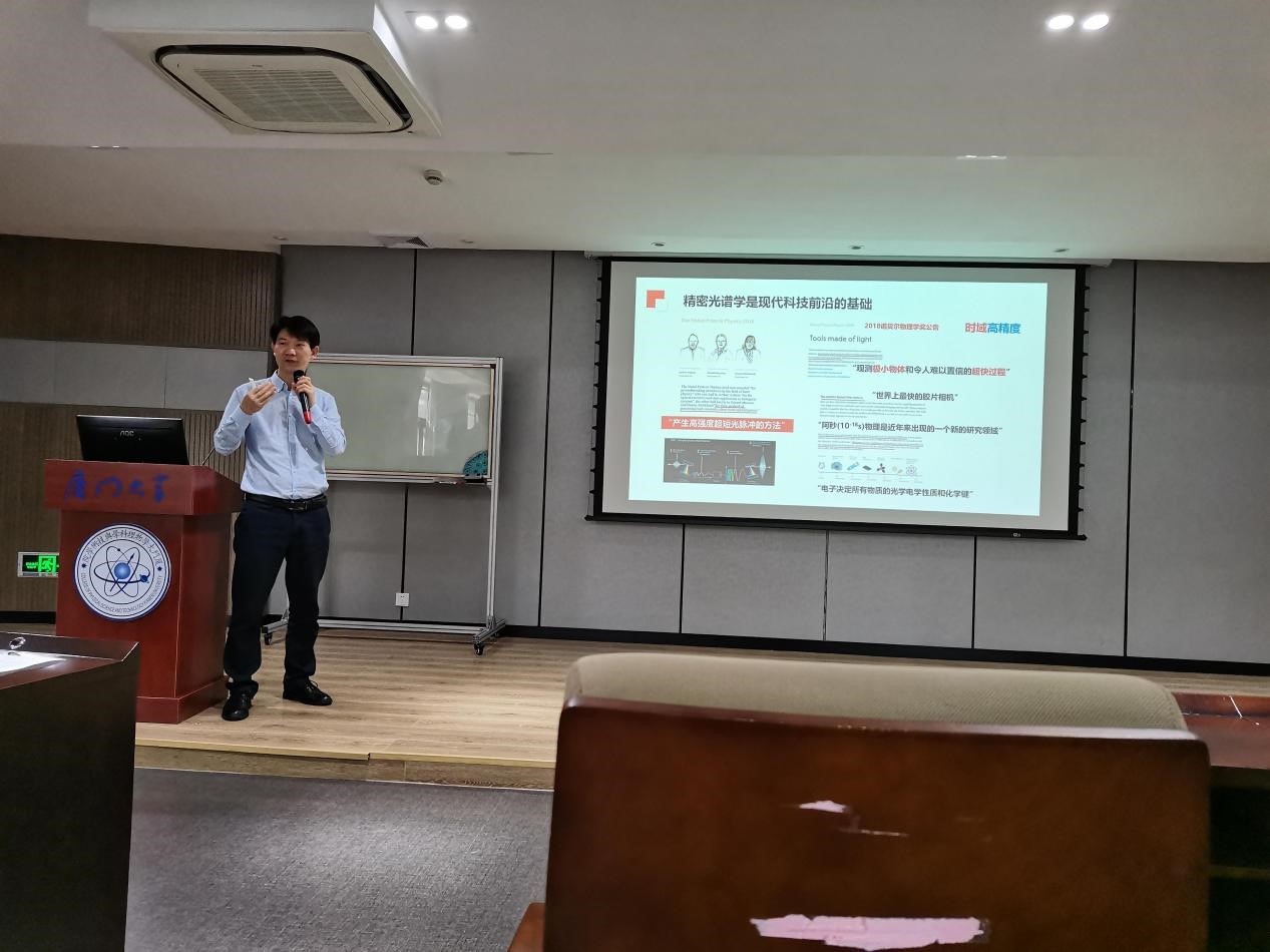 2021年5月14日下午,厦门大学物理学系萨本栋讲坛第111期在海韵园物理楼552报告厅举行。本次讲坛由厦大物理科学与技术学院副院长陈张海教授主持。华东师范大学精密光谱科学与技术国家重点实验室主任吴健教授应邀做了题为“分子超快行为精密测量与调控”的学术报告。