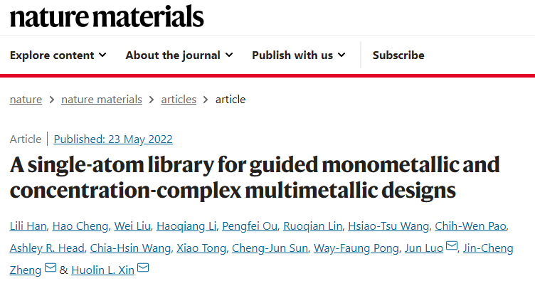 通讯作者:忻获麟;罗俊;郑金成通讯单位:美国加州大学尔湾分校;天津理工大学/电子科技大学(深圳)高等研究院;厦门大学/厦门大学马来西亚分校DOI: https://doi.org/10.1038/s41563-022-01252-y
