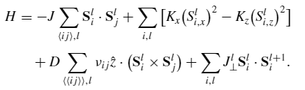 堆垛六角铁磁成多层结构,同时相邻层间耦合为反铁磁,如图5所示。自旋相互作用哈密顿量为