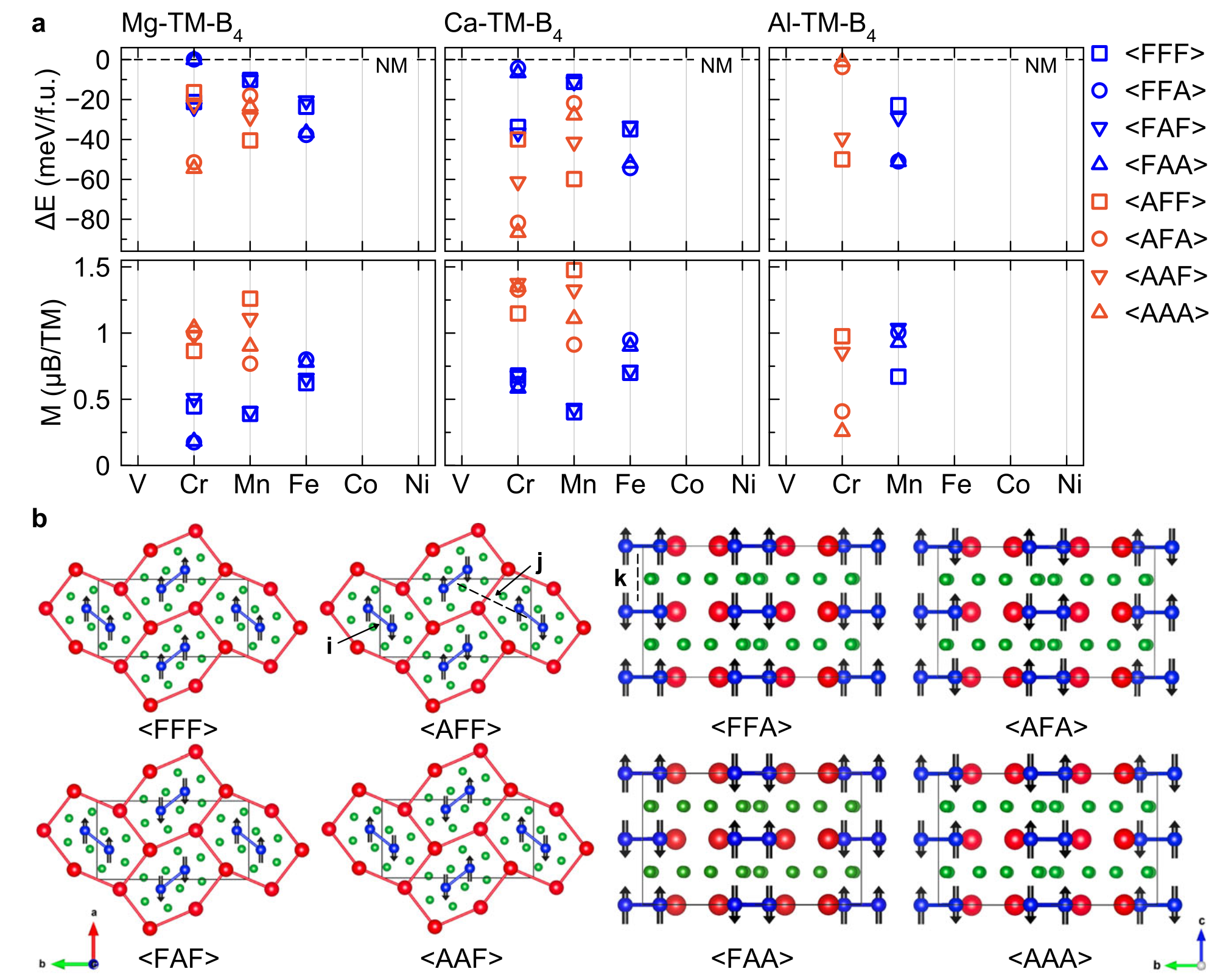 研究团队通过理论预测,利用高通量晶体结构搜索在层状三元硼化物中发现了一类具有结构稳定性和范霍夫奇点的新型材料ATB4,并且揭示了多种可调控的基态磁结构。