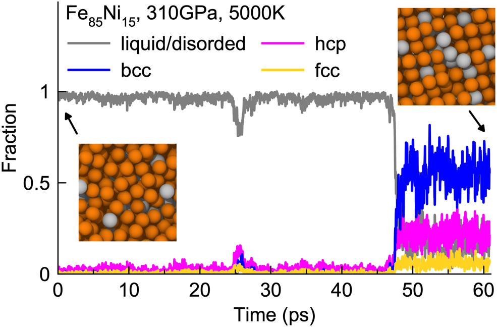 图2 铁镍合金在内核条件下的结晶过程。