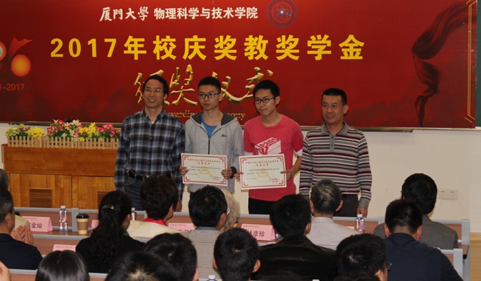 2017年上海天文台党委书记、副台长侯金良研究员为光启奖学金一等奖同学颁奖