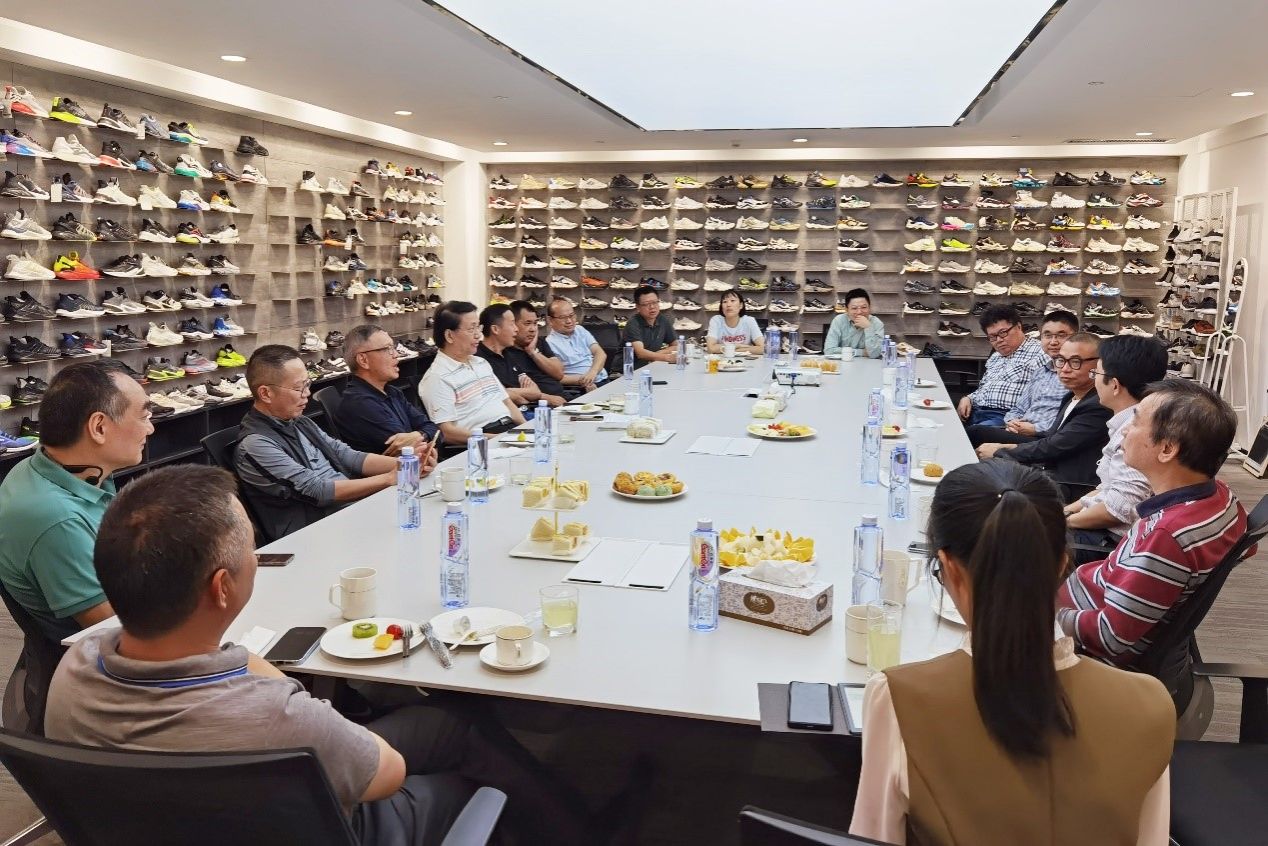 校友们在鼎兴商务大楼参观不同类型的鞋类样品展示、设计、材料等区域,在许松茂校友的介绍下,初步了解艾德在产品研发、采购、品管、销售、品牌文化塑造等方面的探索与成果。