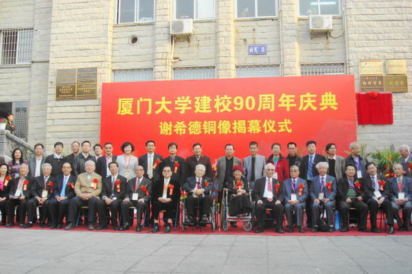 铜像揭幕仪式被正式列为厦门大学90周年校庆活动之一. 赖虹凯副校长及谢希德院士长汀时期的同学,台湾校友会理事长周詠棠学长在仪式上做了重要讲话. 他们还介绍了谢先生读书时期及担任复旦大学校长时接待美国里根总统的诸多鲜为人知的轶事,并衷心感谢上海校友会的捐赠之举,称 “这是母校九十大秩的一件大事”。四十年代的杰出校友,菲律宾校友会名誉理事长邵建寅、美国著名画家朱一雄夫妇、苏林华老先生、温州校友会名誉会长邹荣森、北京校友会秘书长郭振忠、复旦大学党委书记代表杨芃原博士等一百余人出席。上海校友会黄辉、叶治平、朱德贞、郭俊秀、左敏、王炜、陈坚、杨亦飞等十余位校友出席了揭幕式。最后,黄辉理事长做了精彩演讲,表达了全体上海校友将永铭师恩,以谢希德校友为楷模, 继续感恩奉献母校,并衷心祝福母校繁荣昌盛。