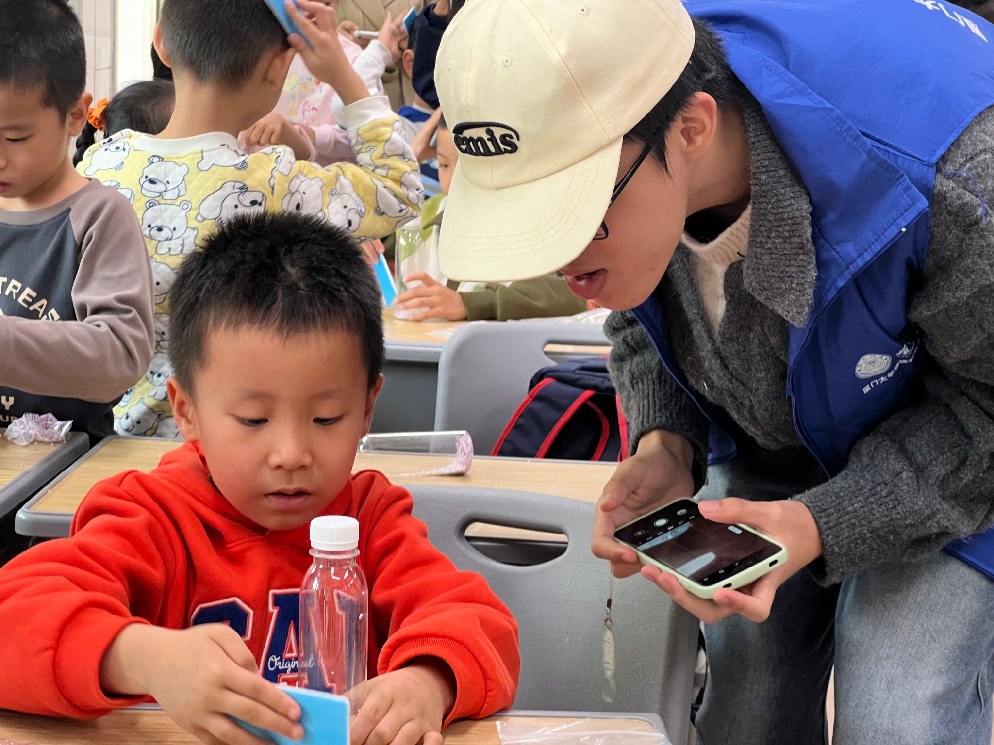 2025年12月3日,厦门大学物理科学与技术学院科普志愿者服务队在学院党务秘书游璐昀老师带领下,走进演武小学,开展“物理科普进校园”活动。团队以“摩擦起电”“纸杯投影”实验为载体,打造“科学游乐场”,让孩子们在动手实践中感悟物理魅力,将党的二十届四中全会“加强国家科普能力建设”要求转化为课堂实践,播撒科学探索的种子。
