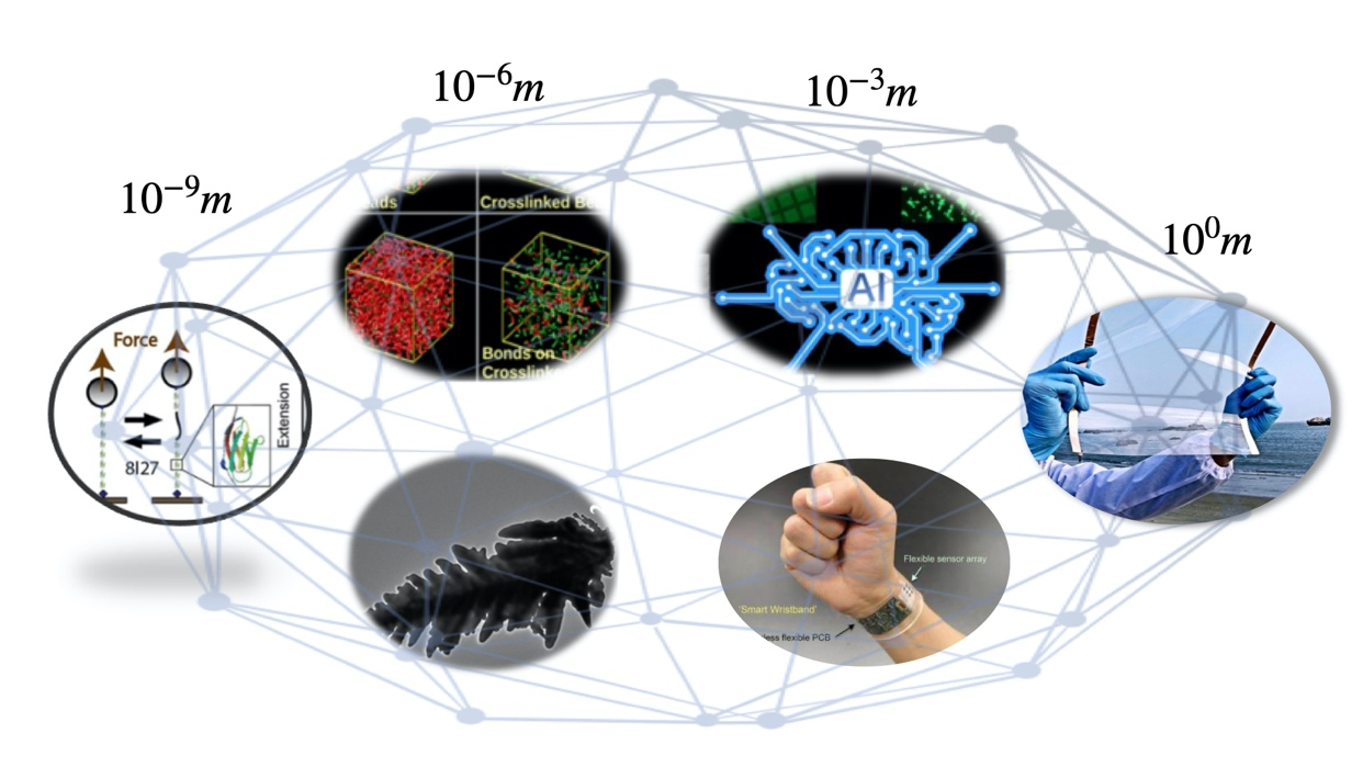 Soft matter exists in every aspect of our daily life and industrial production. From tofu, milk, yogurt and other food, to paint, soap, fabrics and other daily necessities, all are composed of soft materials. Researchers in the branch of soft matter physics are dedicated to the development of the fundamental physics theory of soft matter and the exploration of the industrial application of soft matter materials. Theoretical studies cover protein molecules at the microscale, cells at the meso-scale, and fluids at the macroscale. Industrial applications involve flexible microstructure devices at the microscale, biomedical materials and bio-sensing systems at the mesoscale, and flexible wearable devices at the macroscale.